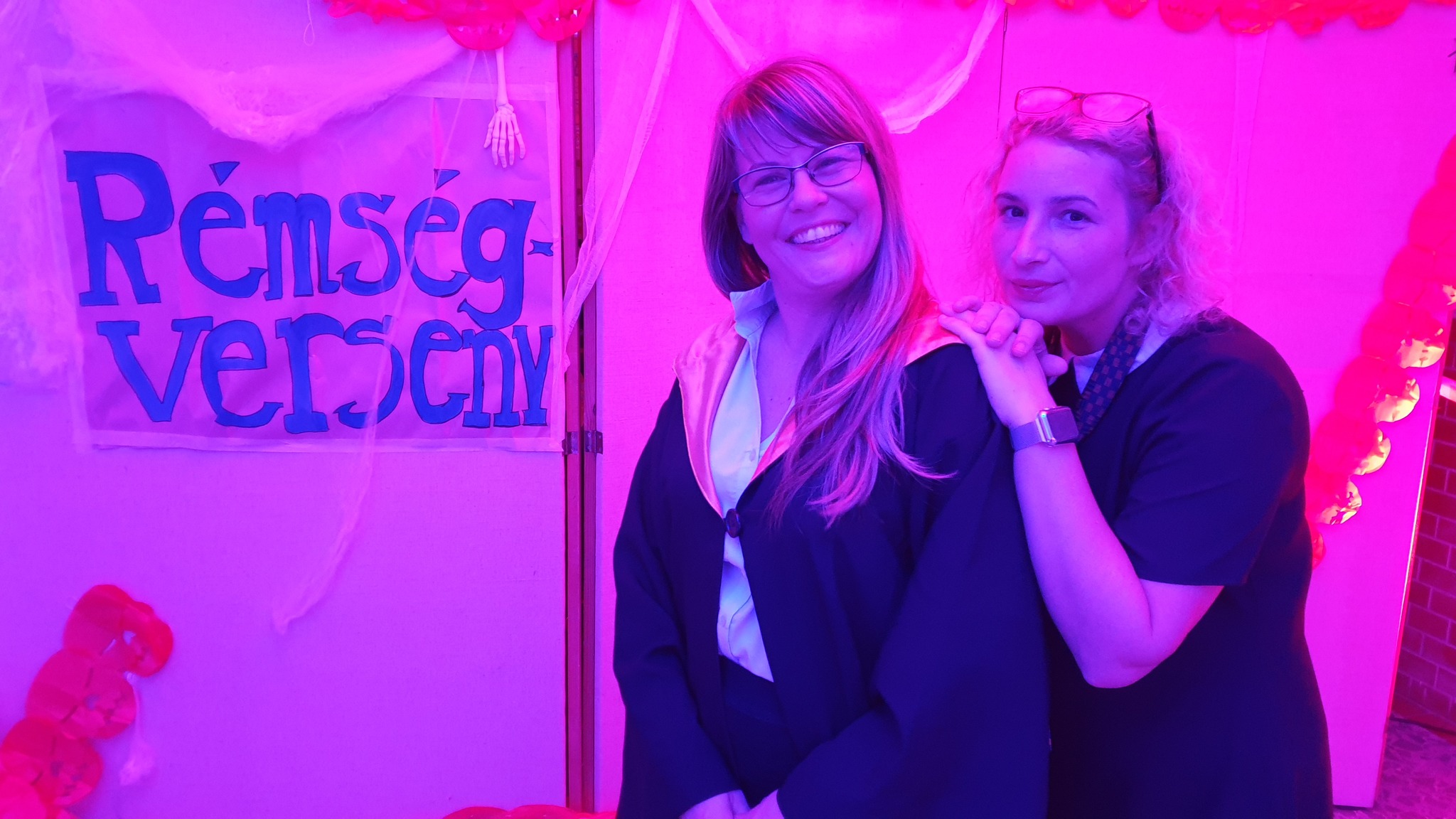 A Szentesi Művelődési Központ munkatársai, Vida Viktória és Lantos Anita 50 órás közösségi szolgálatos diákokat is bevonva egy rémisztően jó bulit szerveztek a Gólyás-házban 2022. október 29-én szombaton, ahol nemhogy szabad volt sikongatni, kötelező hozzávalója volt a Rémségek Házának.