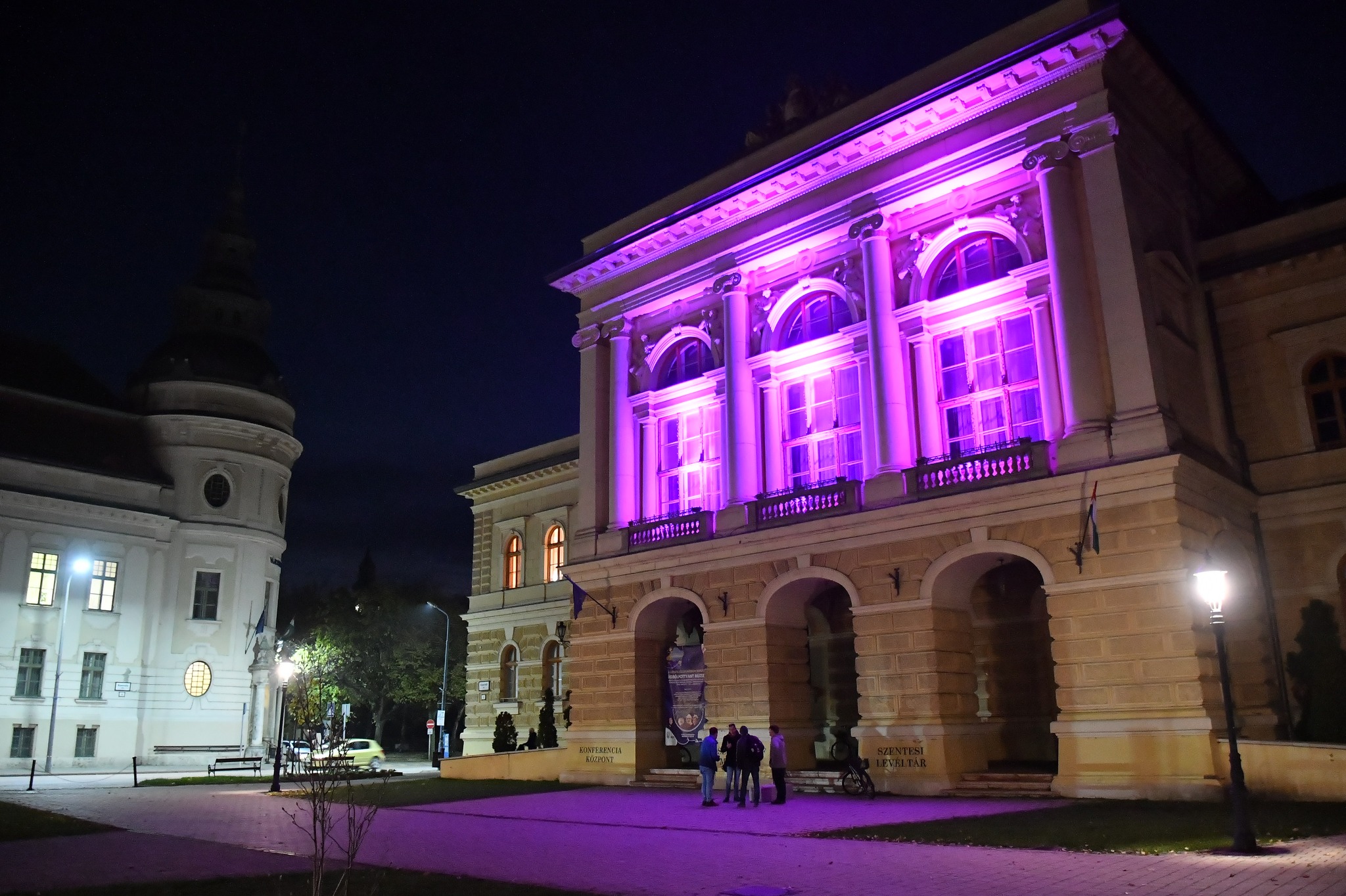 Szentes városa a Megyeháza “lilába öltöztetésével” 2017 óta minden évben csatlakozik a KORE “Színezzük lilára az országot!” kampányához.