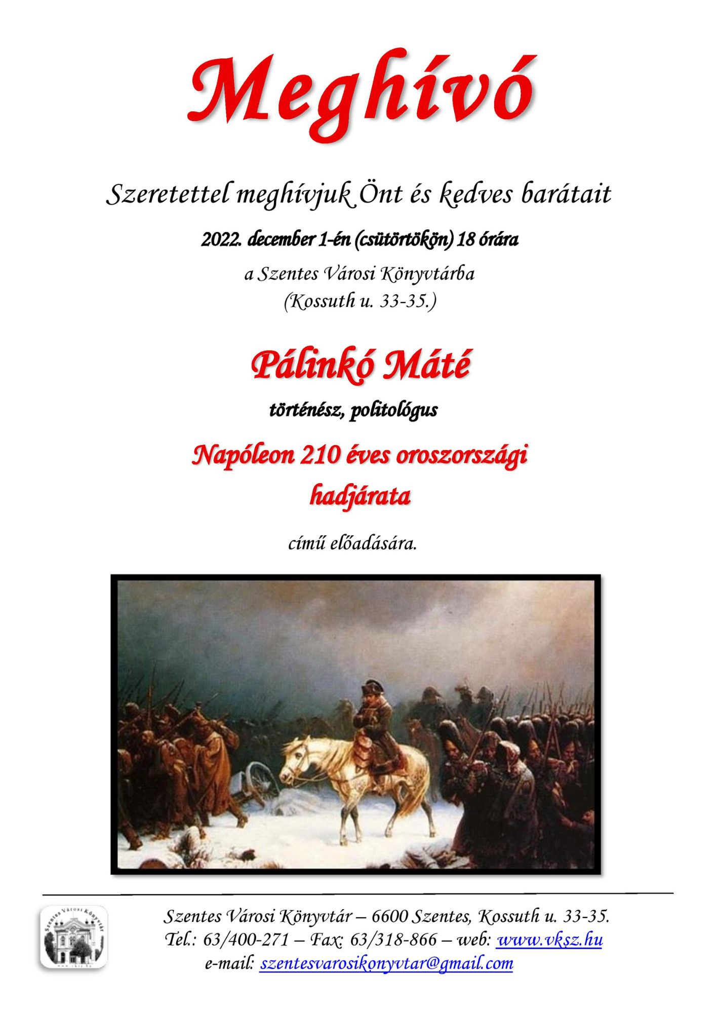 Szentes Város Önkormányzata és a Magyar Honvédség II. Rákóczi Ferenc 14. Műszaki Ezred tisztelettel meghívja a lakosságot az aradi vértanúk emléknapja alkalmából tartandó ünnepi...