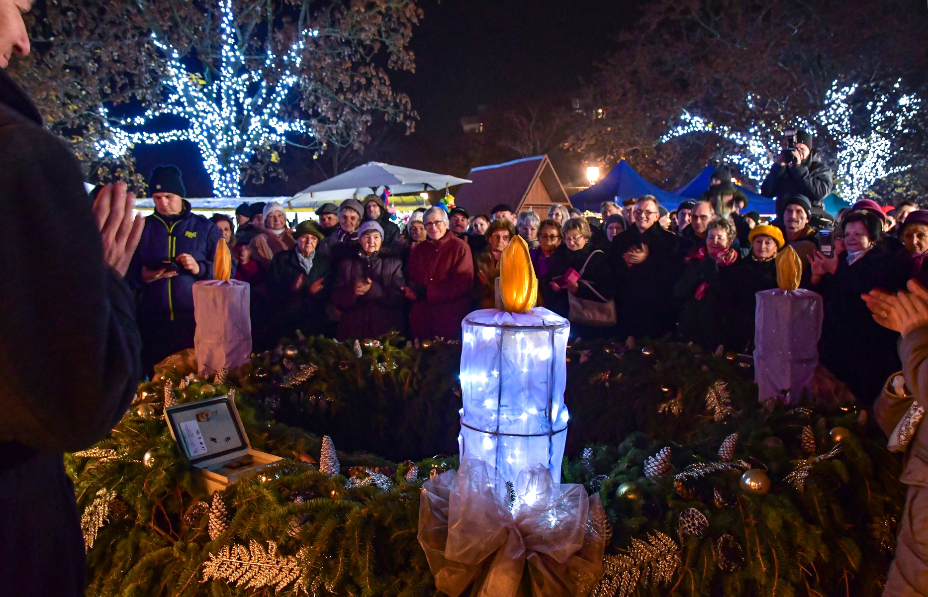 November 27-én a Kossuth téren meggyújtottuk az első adventi gyertyát, a HIT gyertyáját, és közben a Gólyás Házban a gyerekek üvegmatrica festés technikával karácsonyfadíszeket, ablakdekorációkat készíthettek.