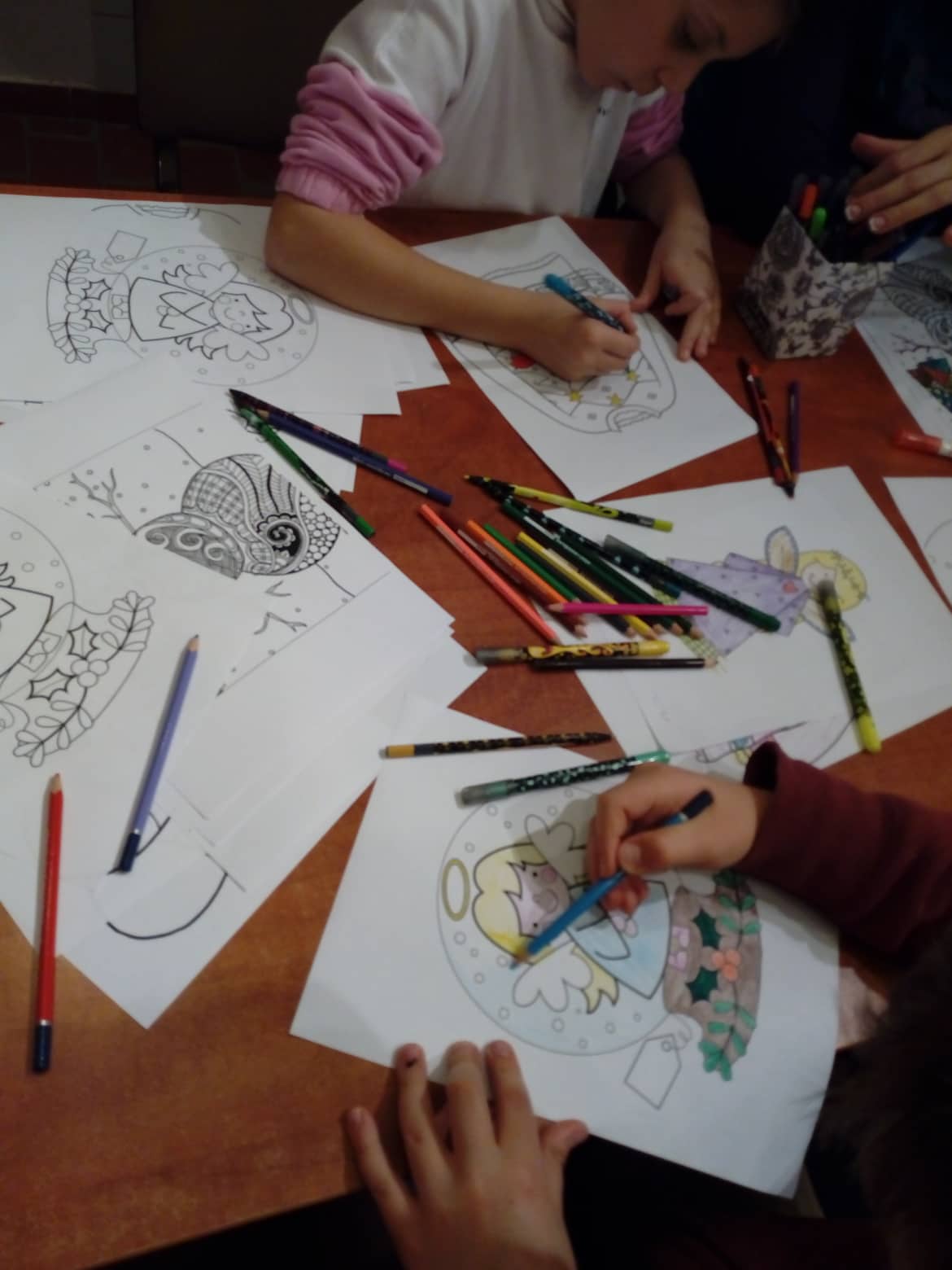 Amíg az alkotások száradtak, színezők, meseszőnyeg (Karácsonyi mesék), játszósarok, forró tea várta a vendégeket.