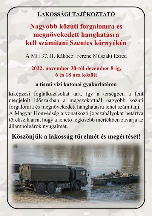 Nagyobb közúti forgalomra és megnövekedett hanghatásra kell számítani Szentes környékén november 30-tól december 8-ig