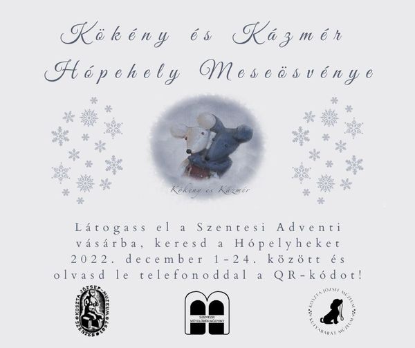 Kökény és Kázmér Hópehely Meseösvénye A szentesi Adventi programok keretében 2022. december 1. és december 24. között a Koszta József Múzeum két bábegere, Kökény és Kázmér minden nap újabb, QR kóddal ellátott hópelyhet akaszt ki a Kossuth térre.