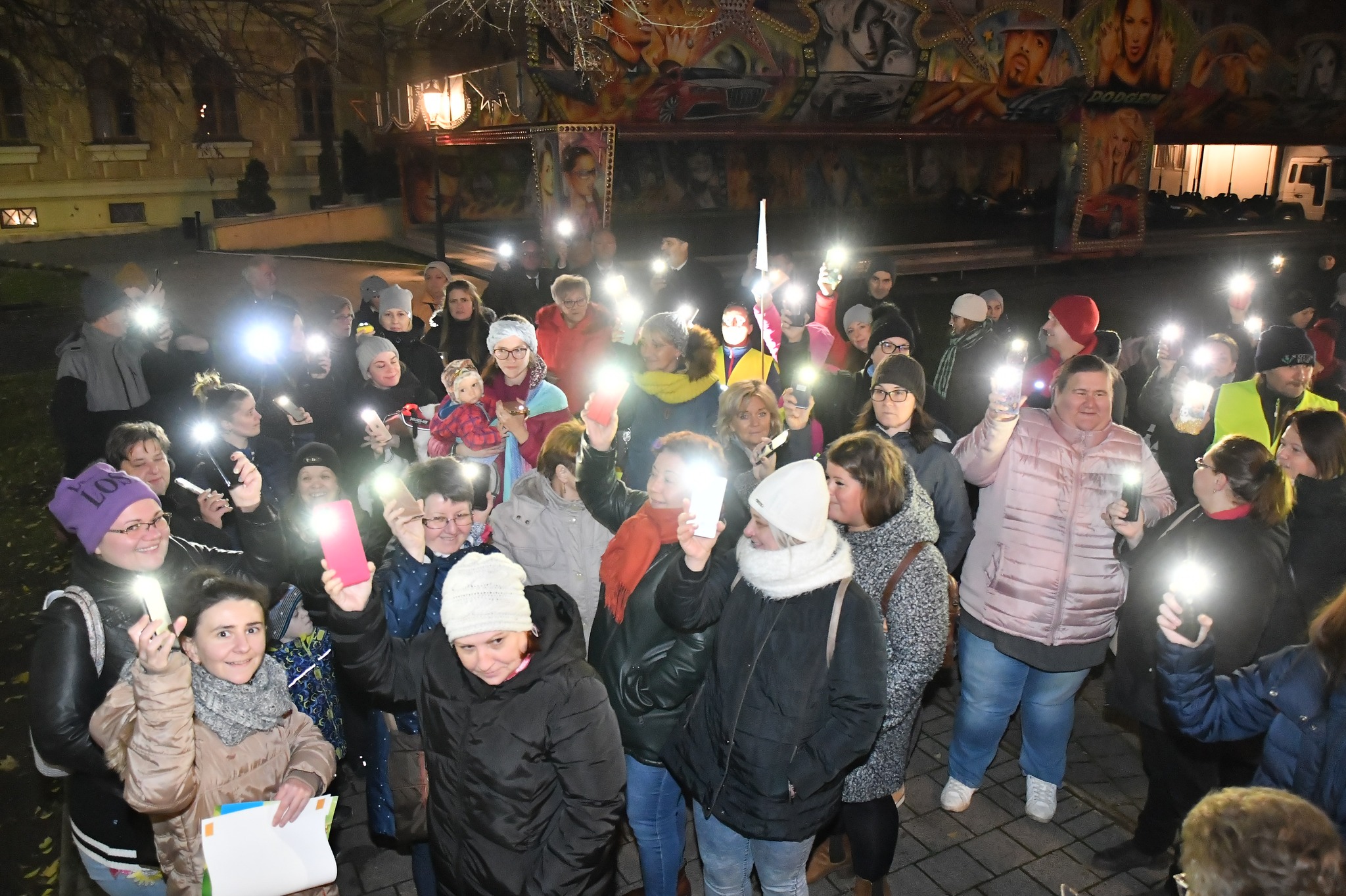 Az online kampány mellett csendes demonstrációt hirdetett a Szentesianyu Facebook csoport a Dr. Bugyi István Kórház Szülészeti és Nőgyógyászati Osztályának fennmaradásáért november 24-re. Mintegy 100 szimpatizáns gyűlt össze a Kossuth téren, és fejezte ki együttérzését, a résztvevők telefonokkal, fáklyákkal világítottak. Az osztály főnővére, szülésznői, volt dolgozói pedig mécseseket gyújtottak. Tudósításunkat a városi hetilap 4. oldalán olvashatják.