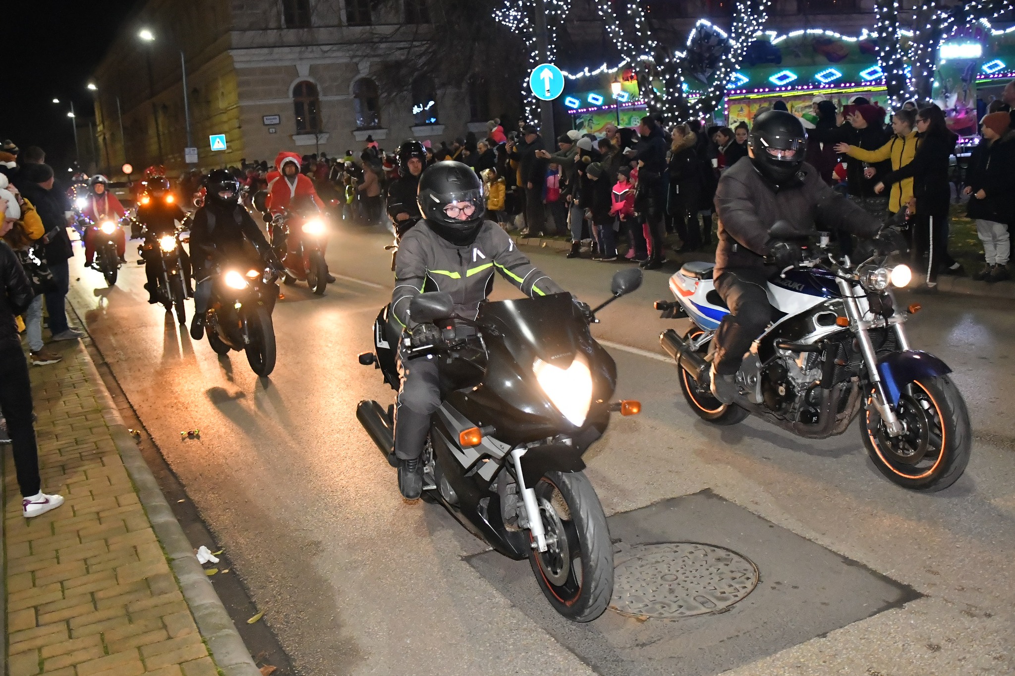 Sokan várták azt a motoros felvonulást, amely során szentesi és környékbeli motorosok Mikulásnak beöltözve vonulnak végig Szentes utcáin és közben szaloncukrokat dobáltak a gyerekeknek. A Kossuth utcai elhaladásukkor készültek a képek.