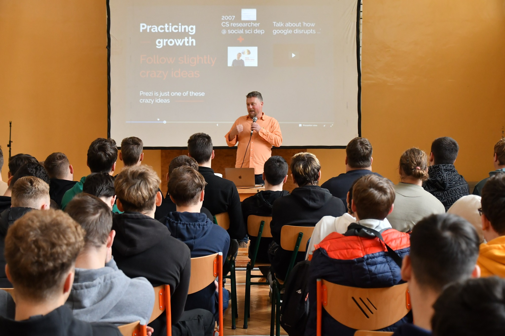 Nagy sikerrel rendezték meg a pályaorientációs napot a Horváth Mihály Gimnáziumban Az előadók nagy része helyi illetőségű szakember volt, de a diákok kérdezhettek a Prezi egyik alapítójától, Halácsy Pétertől is. Egyetemi tanársegéd volt, amikor 2008-ban útjára indították a Prezi prezentációkészítő szoftvert. A rendezvény után adott interjút lapunknak, melyet a Szentesi Élet 9. oldalán olvashatnak.