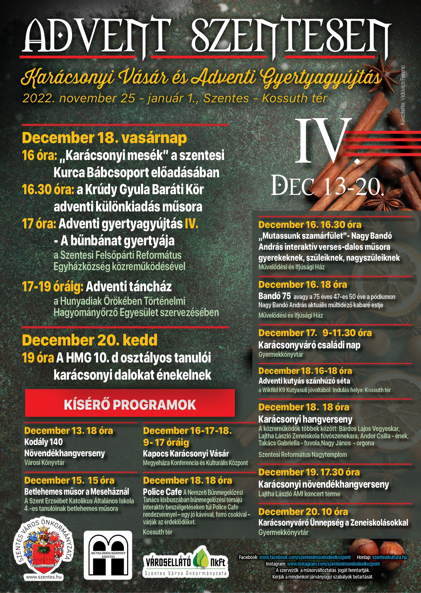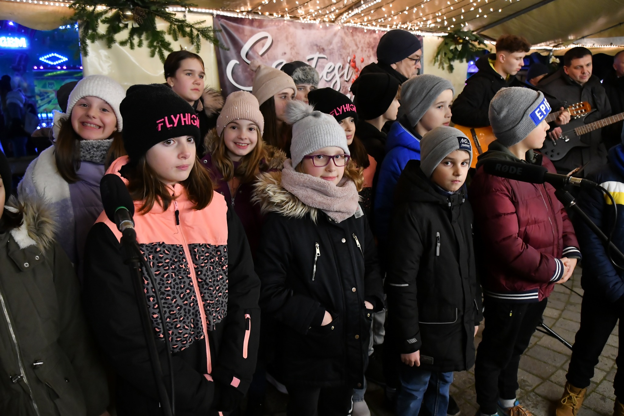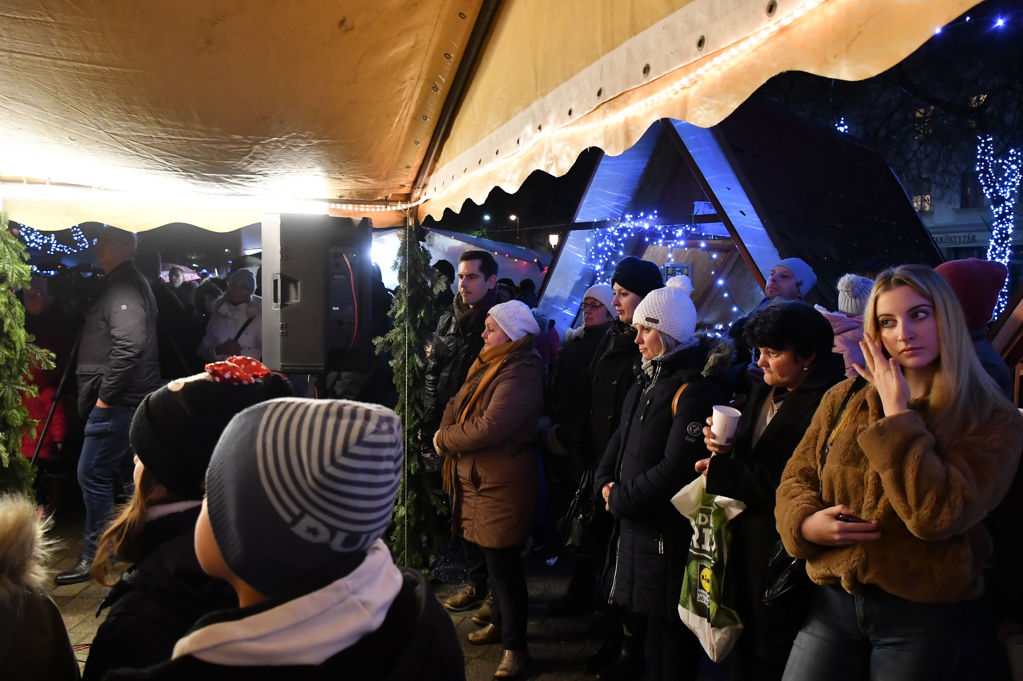 Advent harmadik hétvégéjén már nem igazán kedvezett az idő a kinti programoknak, az eső ellenére azonban ismét megtelt a Kossuth tér ünneplőkkel. A város koszorúján a harmadik gyertyát gyújtották meg, mely a hit és a remény után az örömet jelképezi.