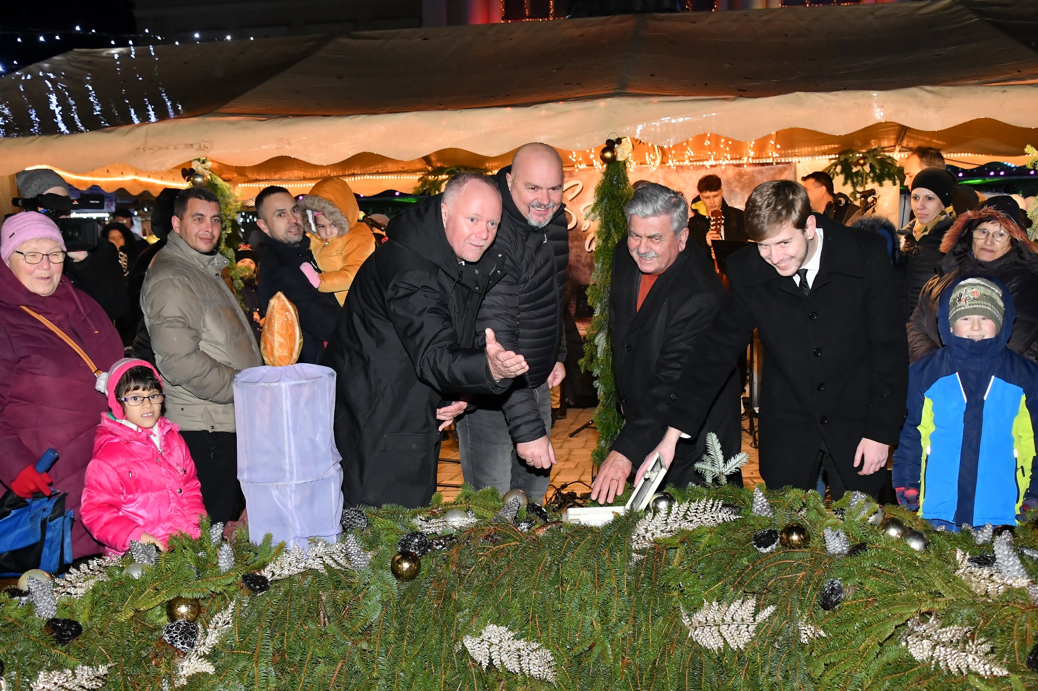 Fehér Csaba református lelkipásztor, Farkas Sándor miniszterhelyettes és Szabó Zoltán Ferenc polgármester és Debreczeni Ákos segédlelkész közösen gyújtották meg az öröm gyertyáját az adventi koszorún.