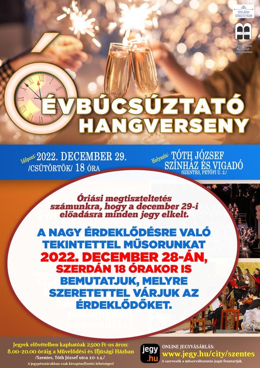 A Szentesi Művelődési Központ, valamint a Tóth József Színház és Vigadó bemutatja: Dupla Óévbúcsúztató hangverseny