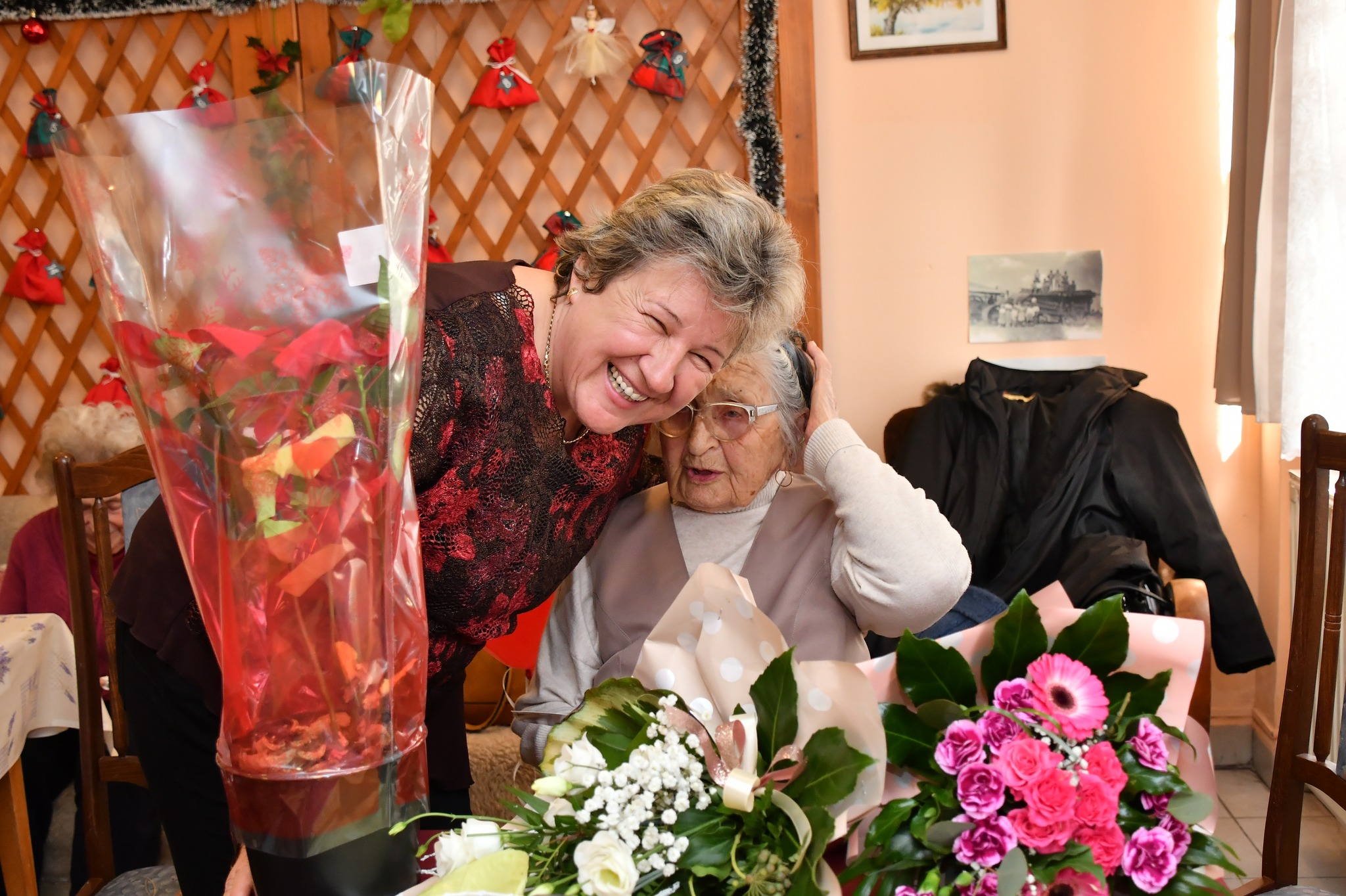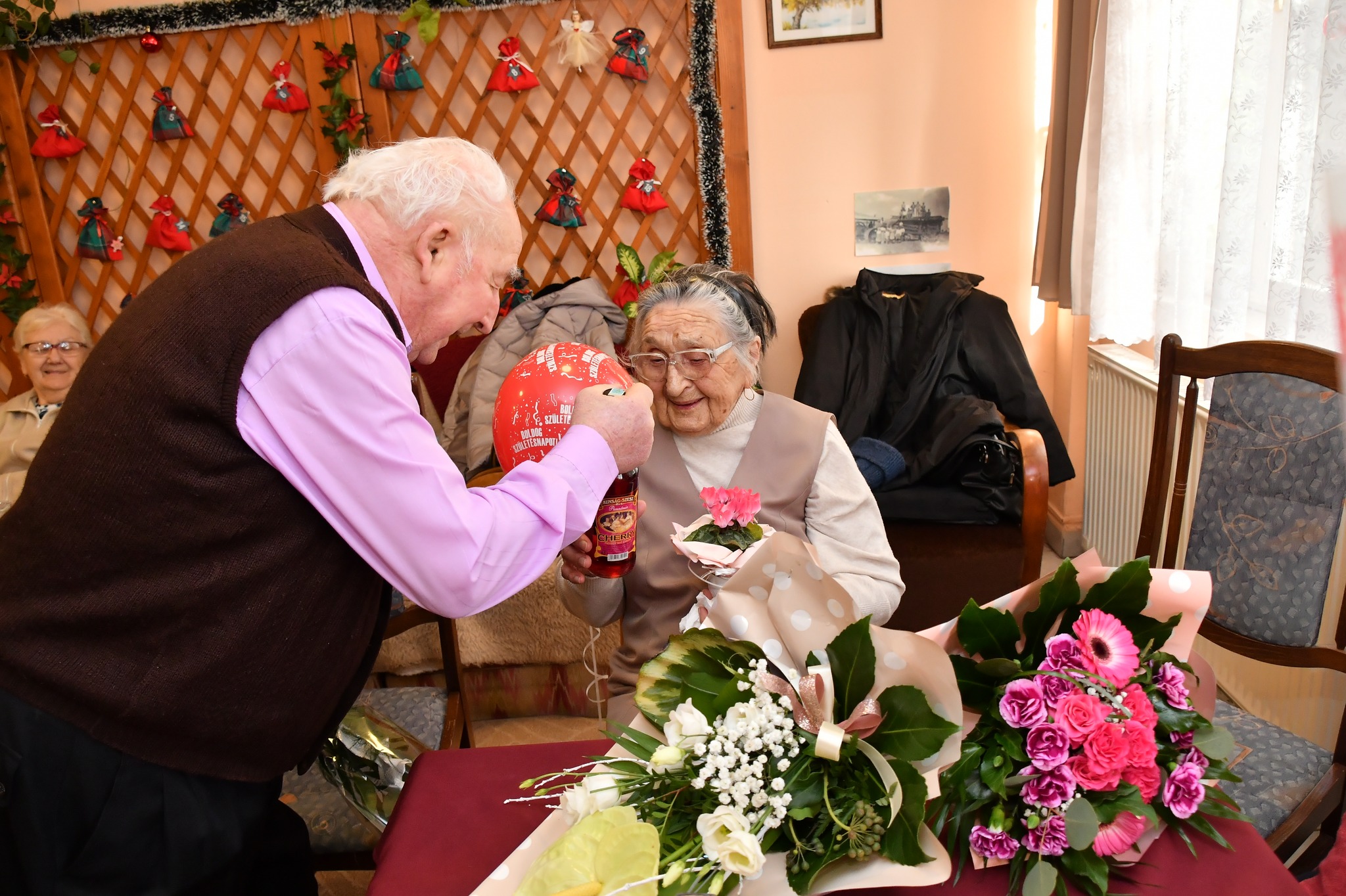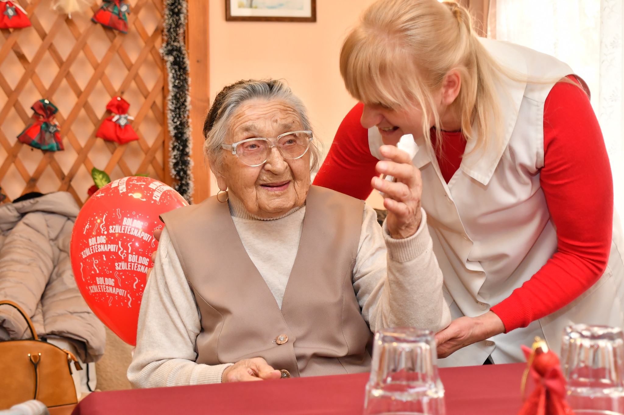 Aranyos pillanat volt, amikor az ünnepeltet Halász Sándorné, Anna néni köszöntötte, aki egy évvel fiatalabb, így ő is túl van a 100. életévén.