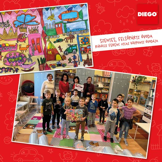 A DIEGO lakberendezési áruház rajzpályázatán a zsűri által kiválasztott legjobb három rajzot beküldő óvoda egyenként 100 négyzetméternyi padlószószőnyeg nyereményben részesült a DIEGO választékából. Természetesen ők választhatták ki, hogy milyen mintázatú padlószőnyegeket kérnek, és milyen méretekben.