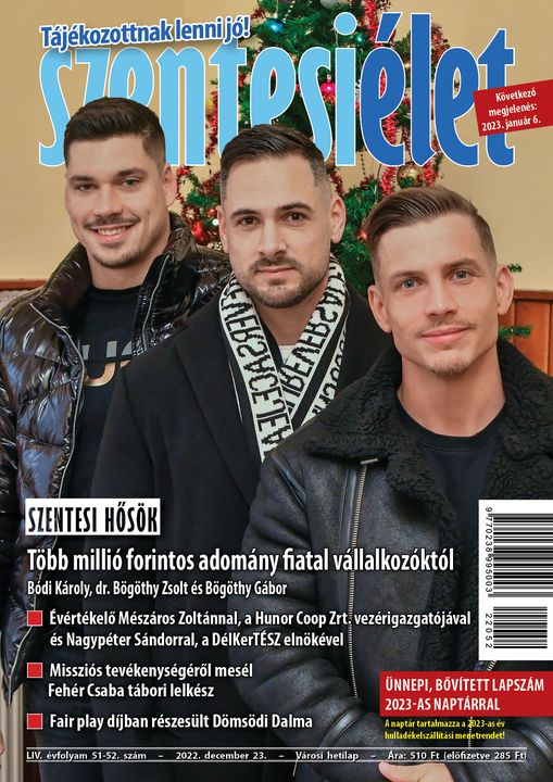 Ünnepi lapszámunk címoldalán Bódi Károly, dr. Bögöthy Zsolt és Bögöthy Gábor. A fiatal vállalkozók több millió forintos adományukkal harmadik éve segítenek szebbé tenni idősek, egyedülállók, fogyatékkal élők és rászoruló családok karácsonyát. Keresse a Szentesi Élet legújabb számát +8 oldallal és a 2023-as naptárral, mely tartalmazza a jövő évi hulladékszállítási menetrendet!