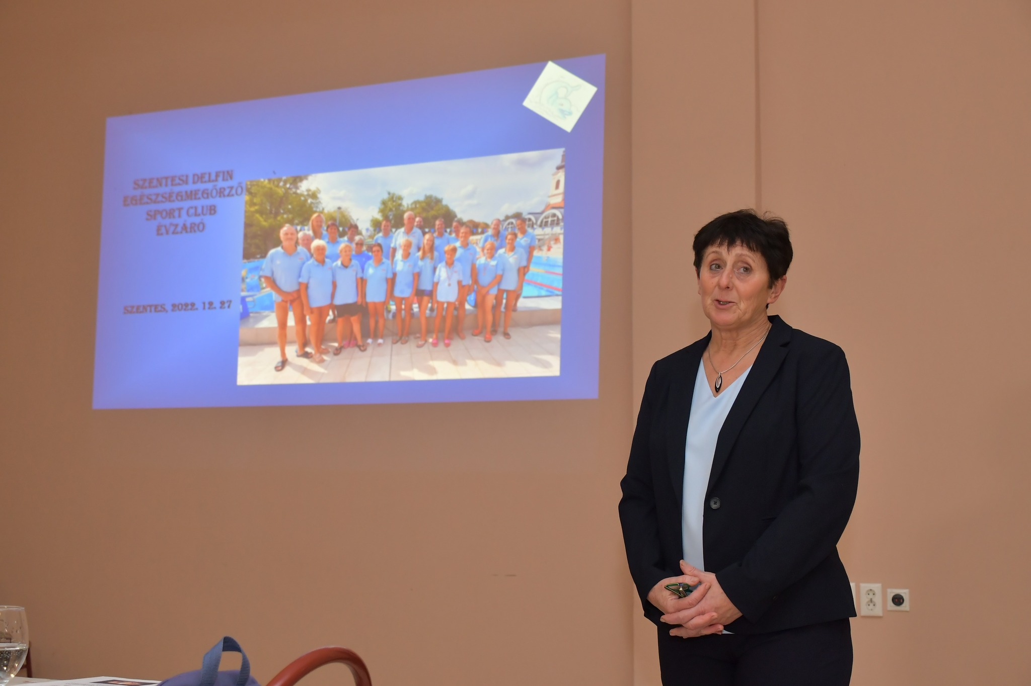– Jelenleg 89 tagja van a Szentesi Delfin ESC-nek, akik közül 57-en vettek részt hazai és nemzetközi versenyeken a 2022-es esztendőben. Közülük 51 úszó tudott felállni egyéni számban a dobogó valamelyik fokára. A többiek nyílt vízben tartott úszóversenyen mérték össze erejüket, illetve olyanok is vannak, akik elsősorban az egészségük megőrzése érdekében úsznak, vagy betegség, családi, munkahelyi elfoglaltság miatt nem tudtak versenyezni, de igyekeztek közösségünk hasznára lenni, ahol csak tudtak – mondta Pólyáné Téli Éva az egyesület vezetője.