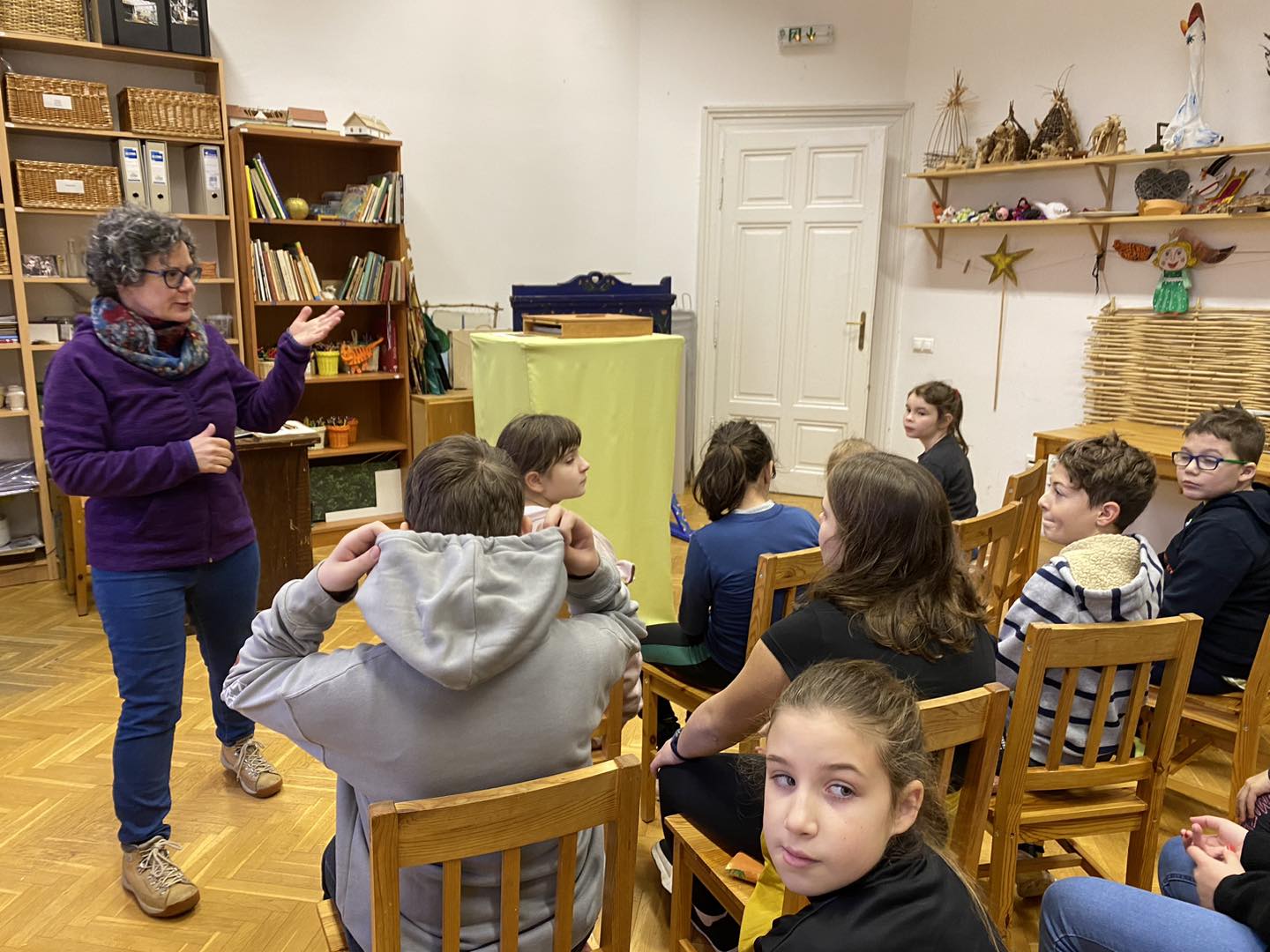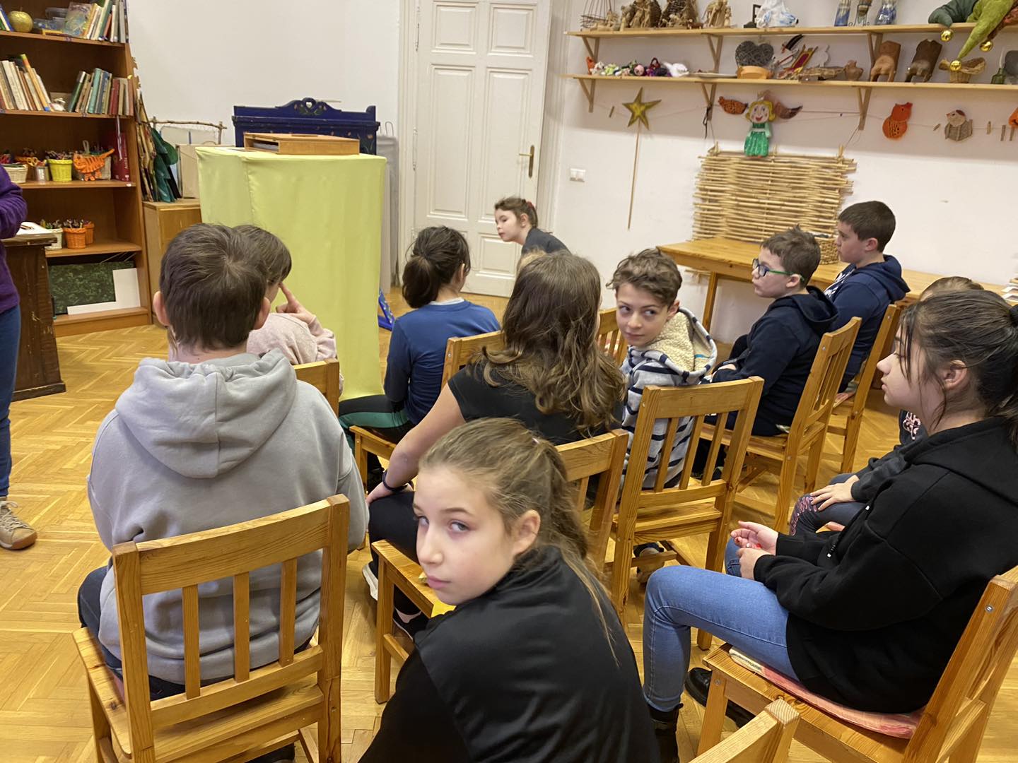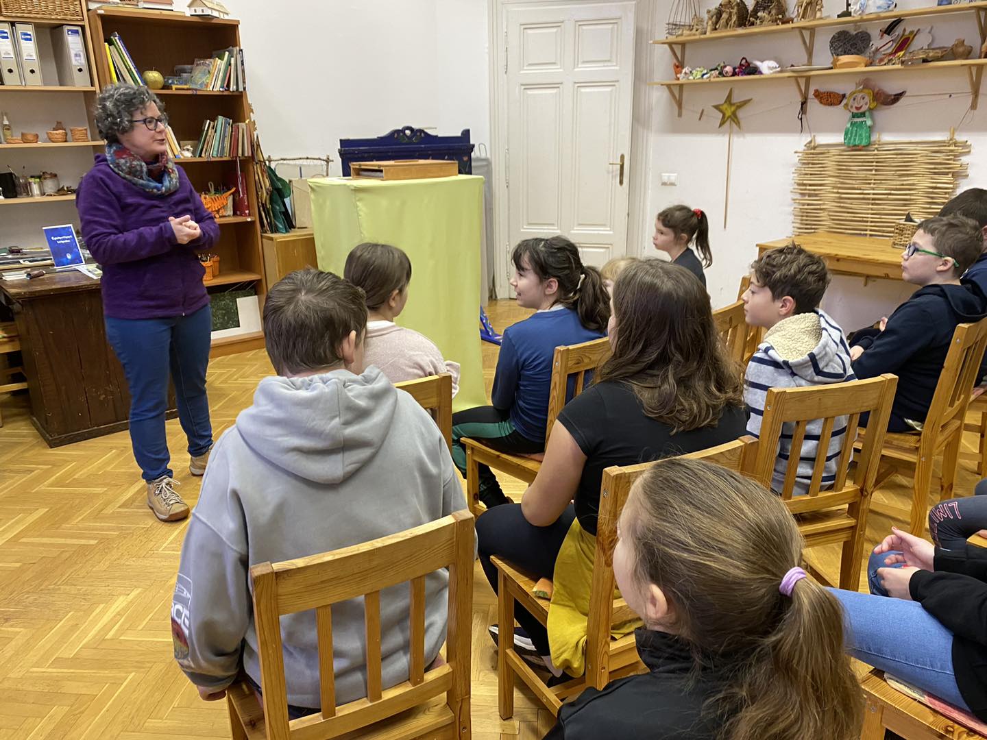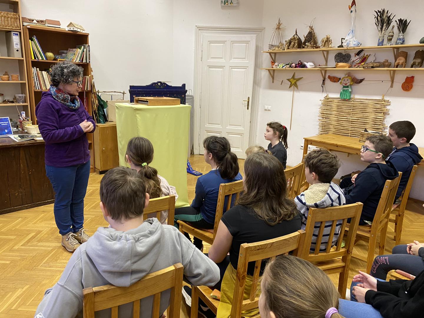 A gyerekek egy érdekes régészeti előadást hallgathattak meg, aztán voltunk a Mesterségek utcájában és végül egy bőrkulcstartót készítettünk el a múzeumpedagógusok segítségével