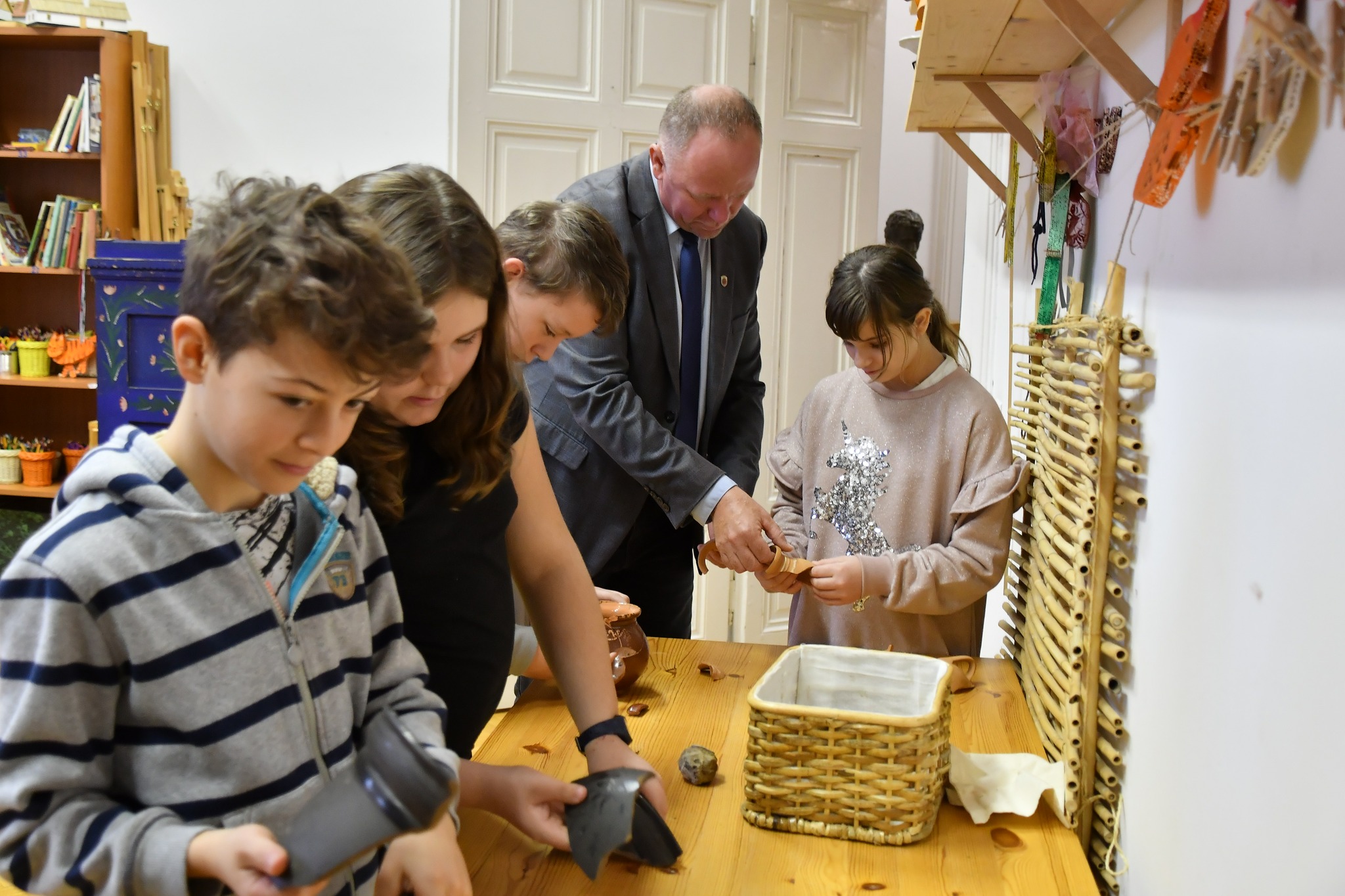 Az egyik napon a régészetet is kipróbálhatták, ahol az agyagedény puzzle sokáig lekötötte a figyelmet, másnap pedig kovácsolhattak (Medgyesi István kovács), majd a meleg műhelyben az agyagozás rejtelmeibe vezette be az apró művészeket Kádár Barbara.