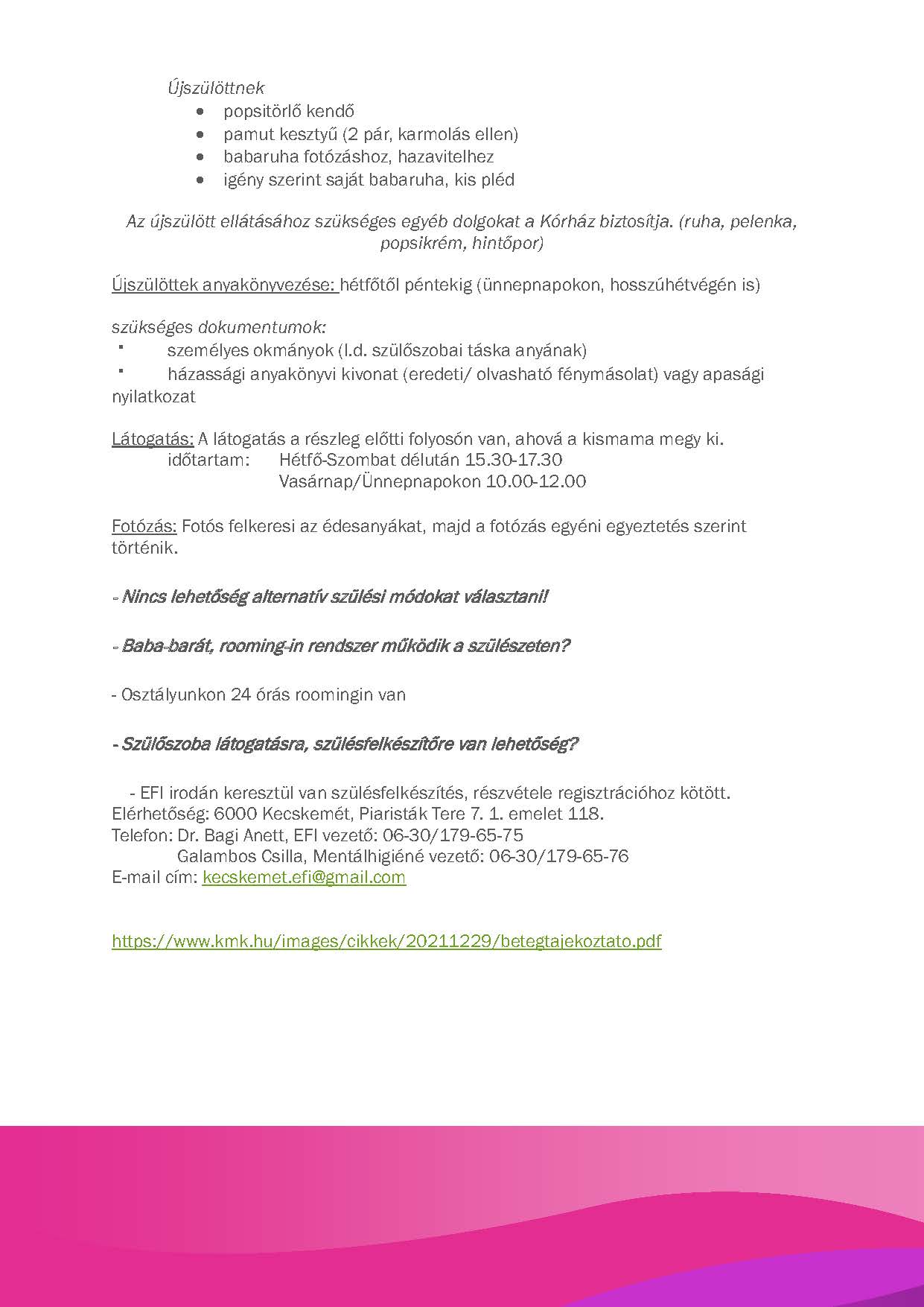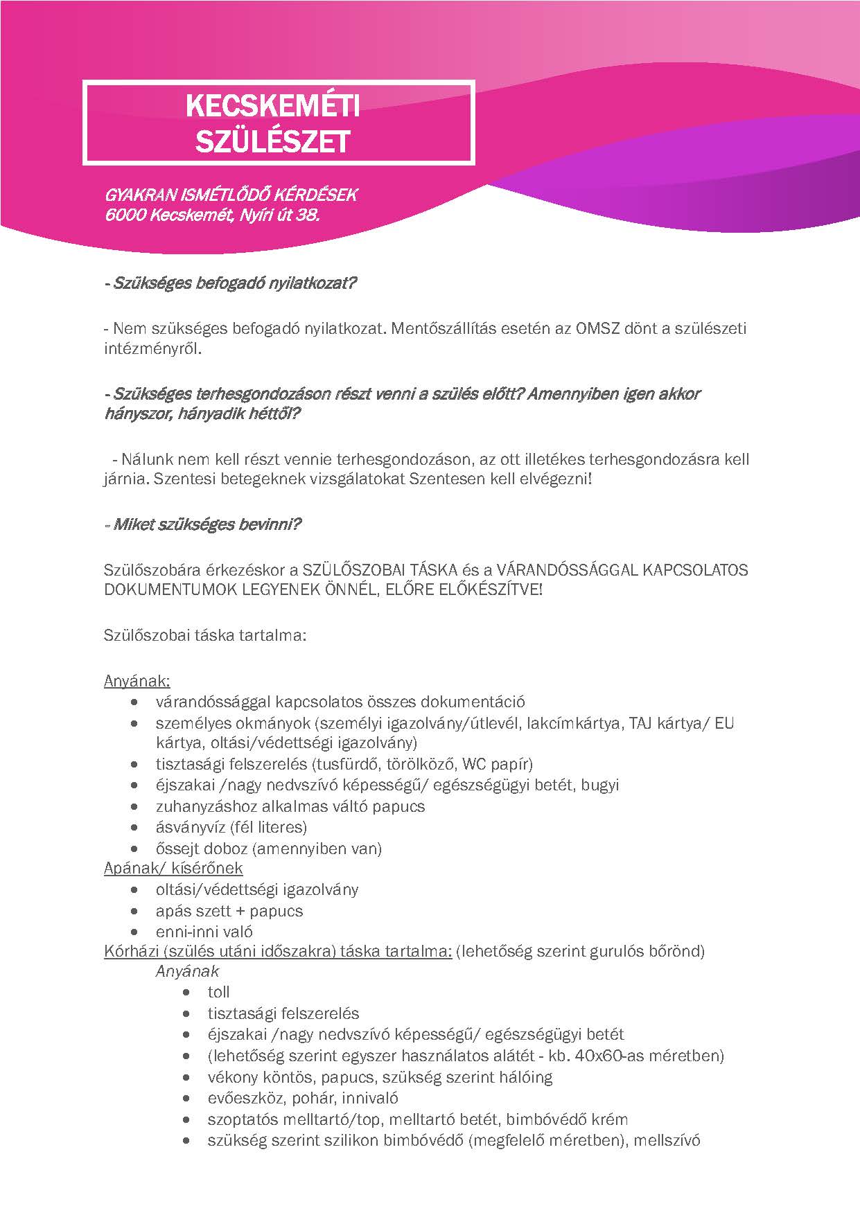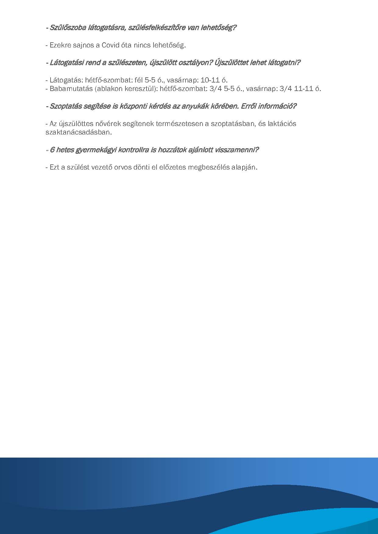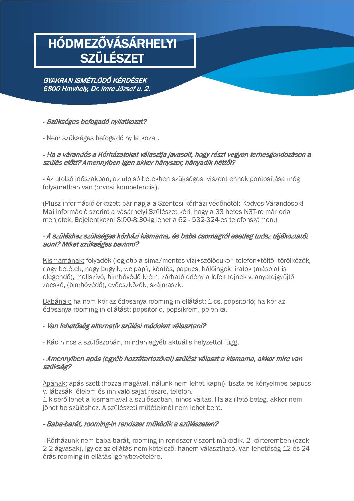 A megkapott anyagokat egységes szerkezetbe tettük és a poszthoz mellékeljük, melyben azok a fontos kérdésekre adták meg a választ a szülészeti osztályok, amelyek ilyenkor felszoktak merülni.