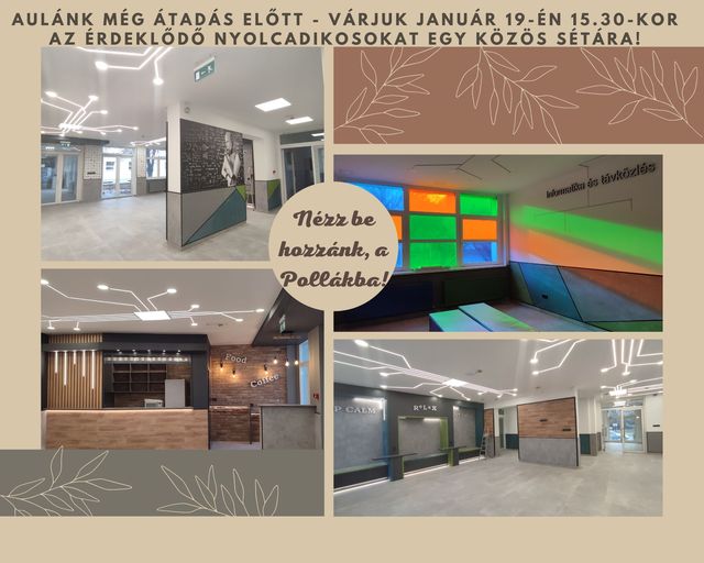 Kedves Nyolcadikos Diákok! Kedves Szülők! Lehetőséget kínálunk még a hivatalos megnyitó előtt a frissen felújított, a 21. század kihívásainak megfelelő aulánk közös megtekintésére, a nálunk oktatott szakmák megismerésére! Várunk minden érdeklődőt szeretettel január 19-én, csütörtökön 15.30-kor! 📢💬❗️