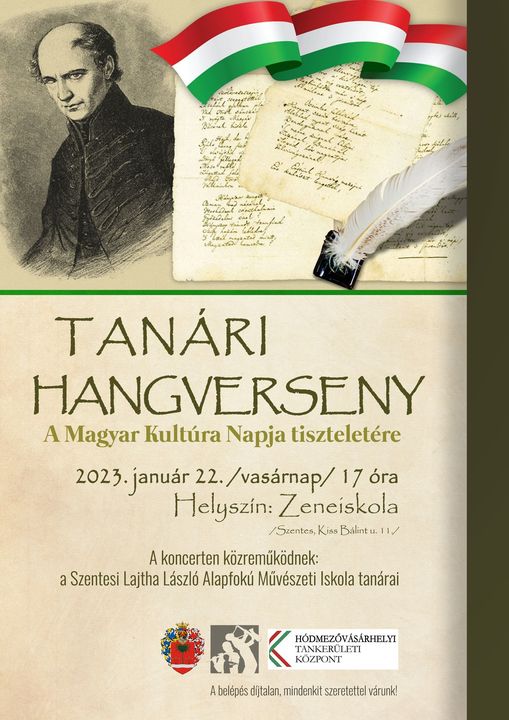 Kezdőlap Programajánló A Magyar Kultúra Napja tiszteletére 2023. január 22-én 17 órakor a Zeneiskolába...