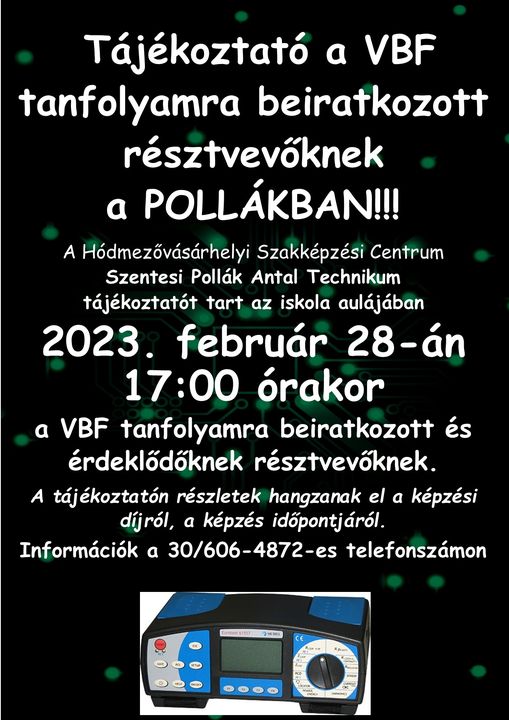 Kezdőlap Hírek Oktatás, tanulmányi hírek Tájékoztatóra várjuk a VBF tanfolyamunk résztvevőit!…