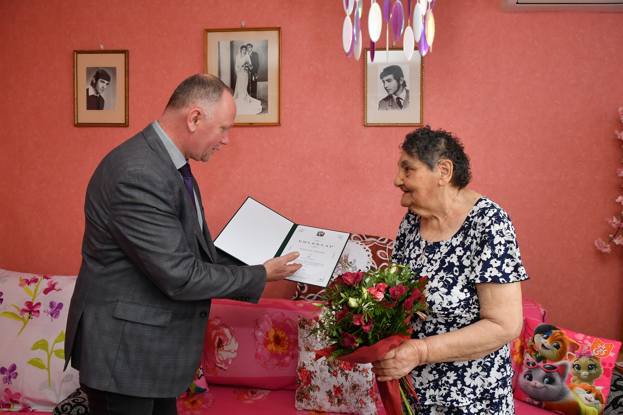 Karácsony Józsefné Emma néni február 17-én ünnepelte 90. születésnapját. A sajtó jelenlétében köszöntötte városunk újabb szépkorú lakóját Szabó Zoltán Ferenc polgármester, aki virágcsokorral és a miniszterelnök emléklapjával érkezett. A részleteket lapunk 5. oldalán olvashatják.