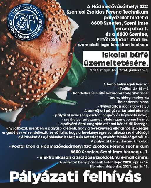 pályázatot hirdet a 6600 Szentes, Szent Imre herceg utca 1.