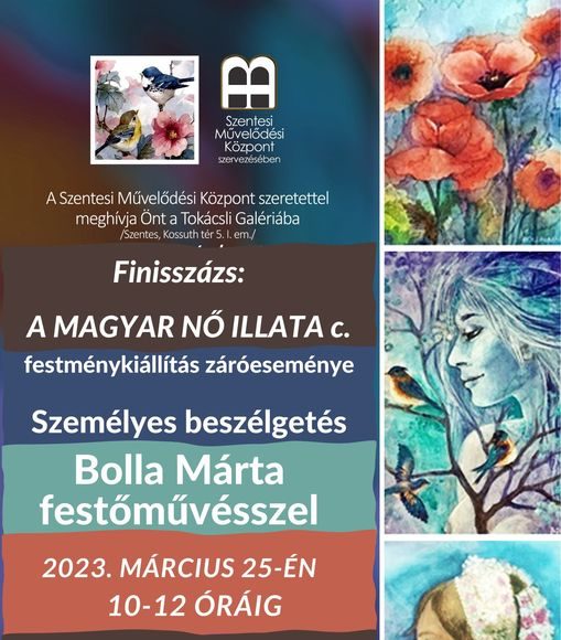Kedves Művészet iránt Érdeklődők! 2023. március 25-én 10 órától Bolla Márta festőművész A magyar nő illata kiállítás záróeseménye alkalmával személyes beszélgetésre várja Önöket a Tokácsli Galériába. Kérjük,