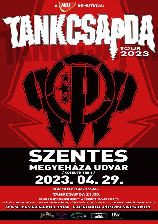 Nagy örömmel jelentjük be, hogy április 29-én, a Megyeháza KKK udvarán fogadjuk Magyarország egyik legnépszerűbb rockzenekarát, a Tankcsapdát. 🔖 jegyek: a TIXA online felületén: https://tixa.hu/tcs-szentes-2023 , valamint a Művelődési és Ifjúsági Házban. A belépők elővételben 6000 Ft, a helyszínen 6500 Ft. #HangversenyközpontSzentes #TCS #Tankcsapda #RNR #zene #koncert