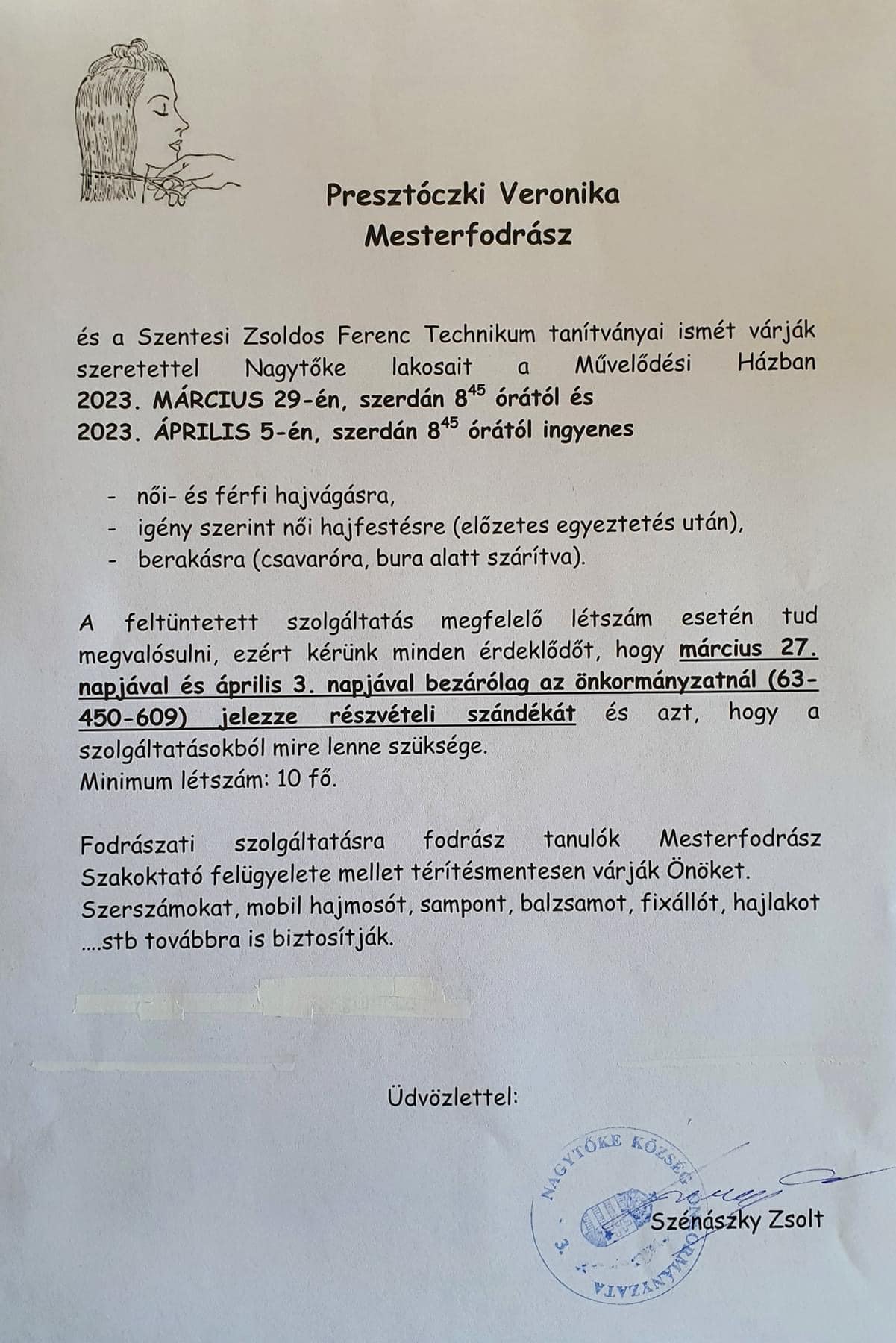 ♥️ A jó kezdeményezéseket folytatni kell‼️ 2022. szeptemberében indult Nagytőkén az a kezdeményezés, hogy Presztóczki Veronika mesterfodrász, és a Zsoldos Ferenc Technikum tanulói Nagytőkére jöttek azzal a céllal, hogy a településeken élő emberek számára fodrászati szolgáltatást nyújtsanak.