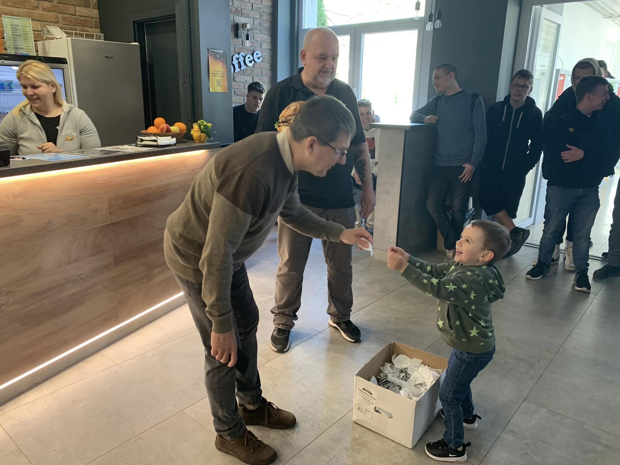 Iskolánk büféje néhány hete akciót hirdetett a diákoknak, vásárlásukkal lehetőséget kaptak néhány különleges “ízbomba” elnyerésére. A sorsolás ma a 3. szünetben meg is történt, ezt dokumentálják a mellékelt fotók. 🙂 A főnyeremény egy szerencsés és – szemmel láthatóan – igen elégedett végzős tanulóhoz került.