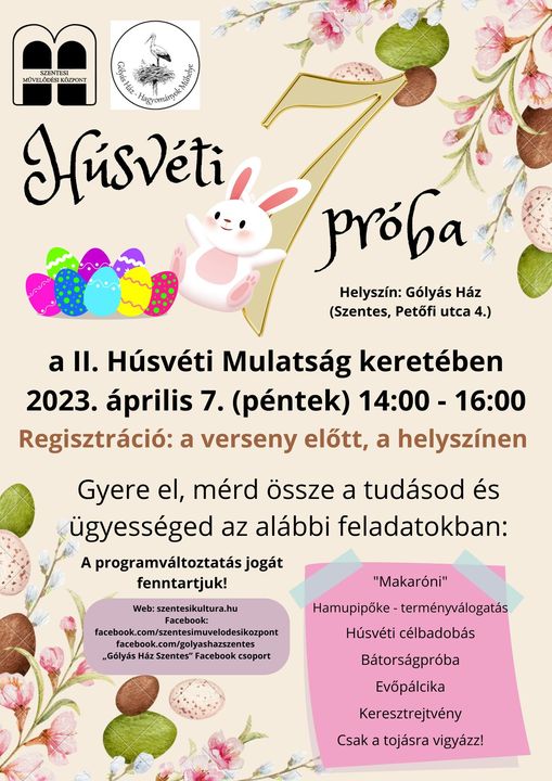 A II. Húsvéti Mulatság keretében Húsvéti 7próbára várjuk a csapatokat!