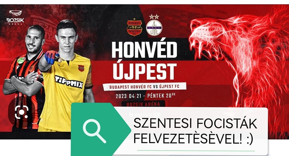 Ma 20 órakor (április 21.) az M-4-en látható Honvéd-Újpest mérkőzésen szentesi fiatalok vezetik fel a csapatokat.