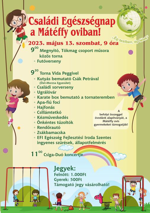 Minden érdeklődőt várnak a Mátéffy oviba 2023. május 13-án szombaton 9 órától, hogy négy év eltetltével újra együtt bulizzunk a Mátéffy családinapon! Részletek a plakáton!