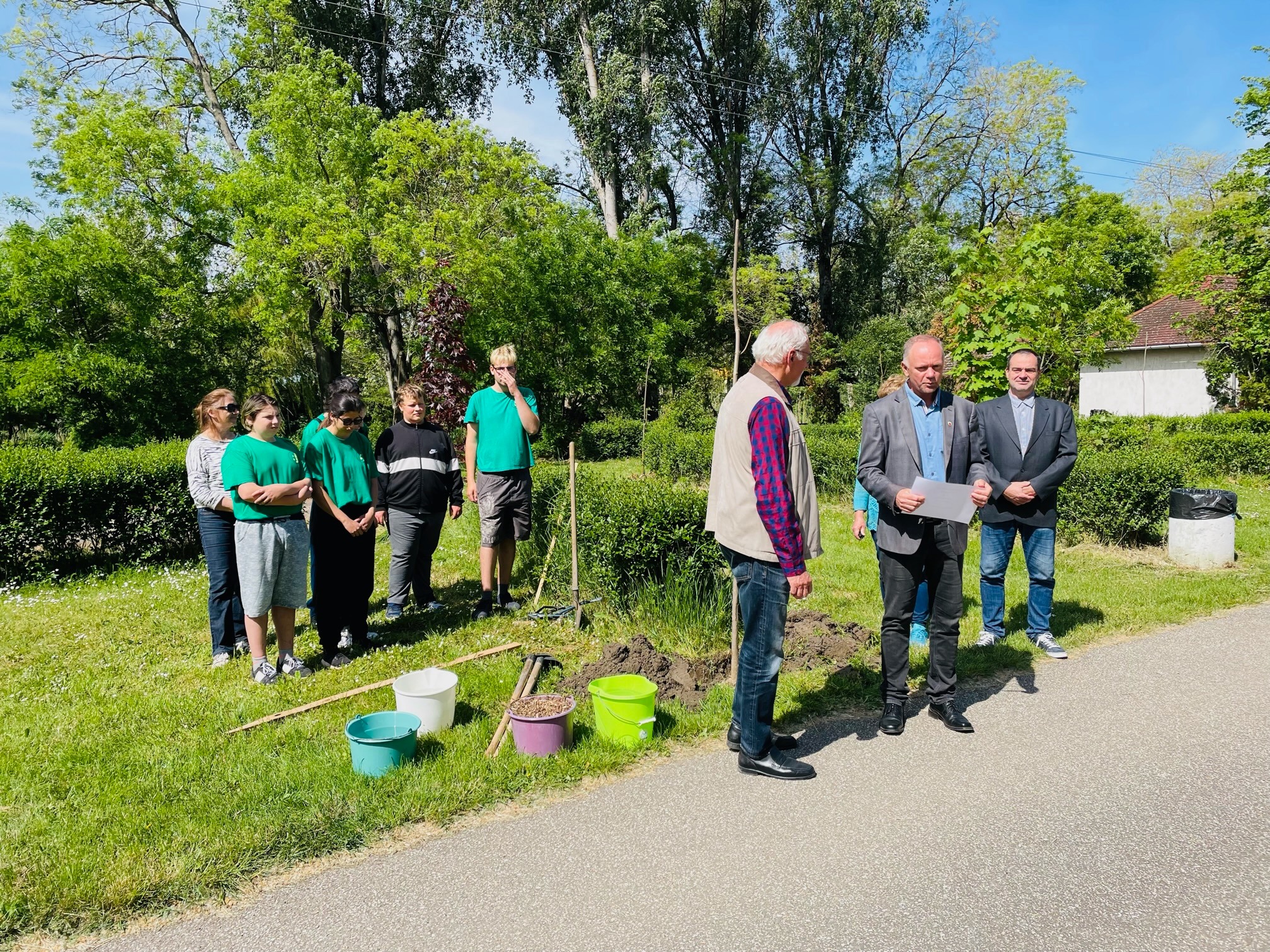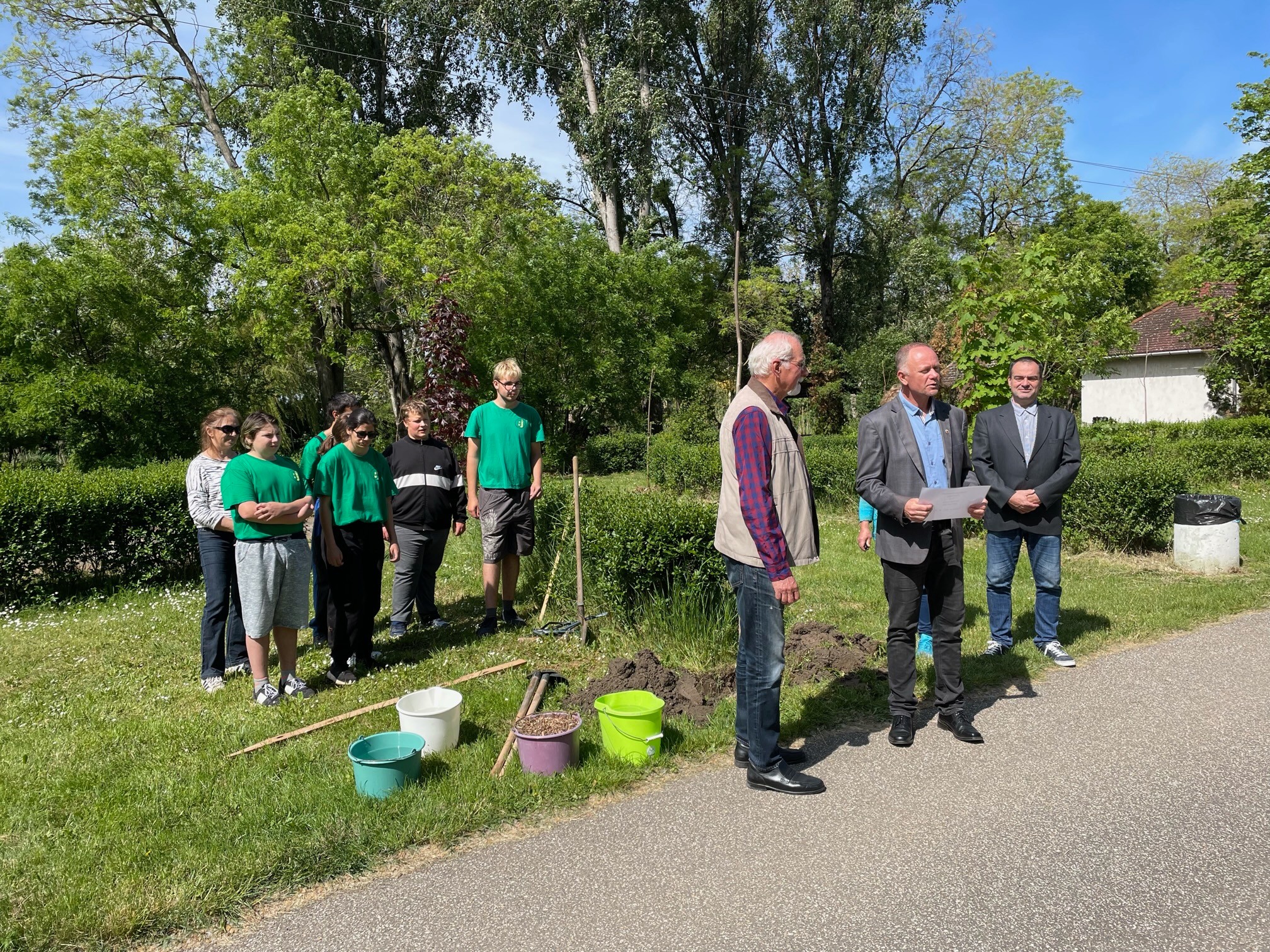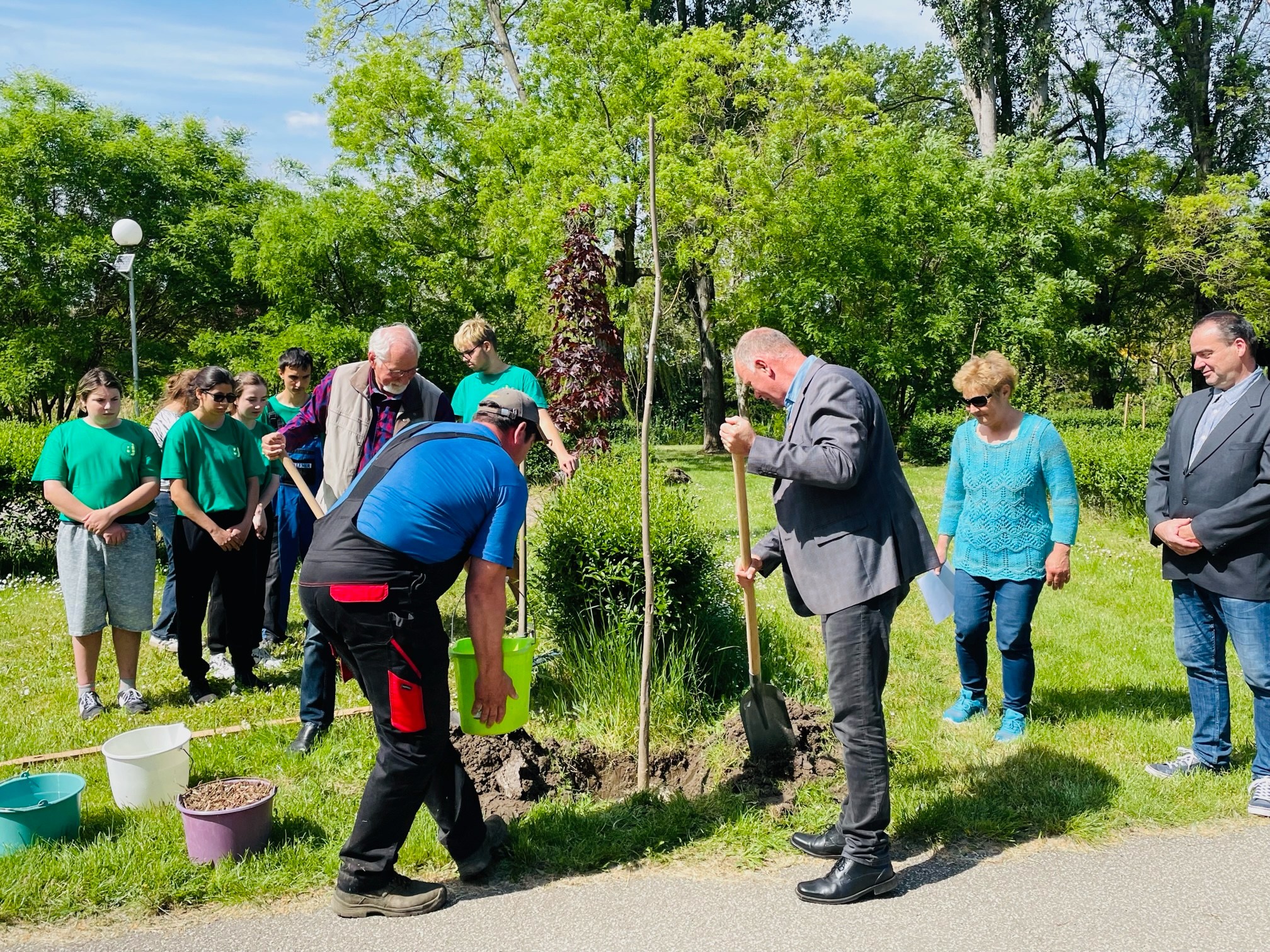 Baranyi Imre, a BARIZBER Kft. ügyvezetője ajánlotta fel a facsemetéket, amelyeket a Bartha János Kertészeti Technikum és Szakképző Iskola tanulói segítettek elültetni Szabó Zoltán Ferenccel együtt. A polgármester megköszönte a vállalkozásoknak, cégeknek, civil szervezeteknek, kisebb közösségeknek és magánszemélyeknek a programban való részvételt, hiszen a közös munka, közös siker.