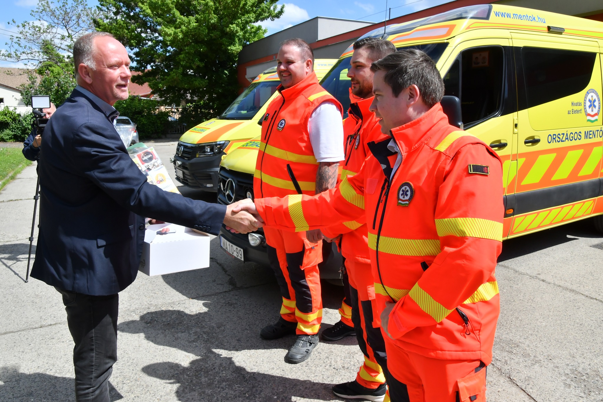 Ez alkalomból köszöntötte a szentesi mentőállomás dolgozóit Szabó Zoltán Ferenc polgármester 2023. május 10-én.