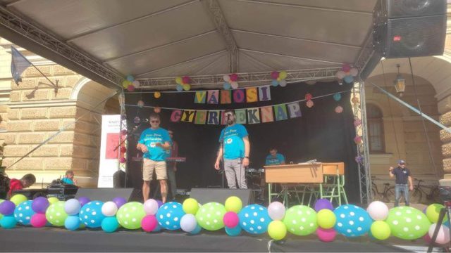 A színpad és a Pompom zenekar már készen áll várjuk szeretettel a gyerekeket 9:45 re a szentesi Kossuth téren!
