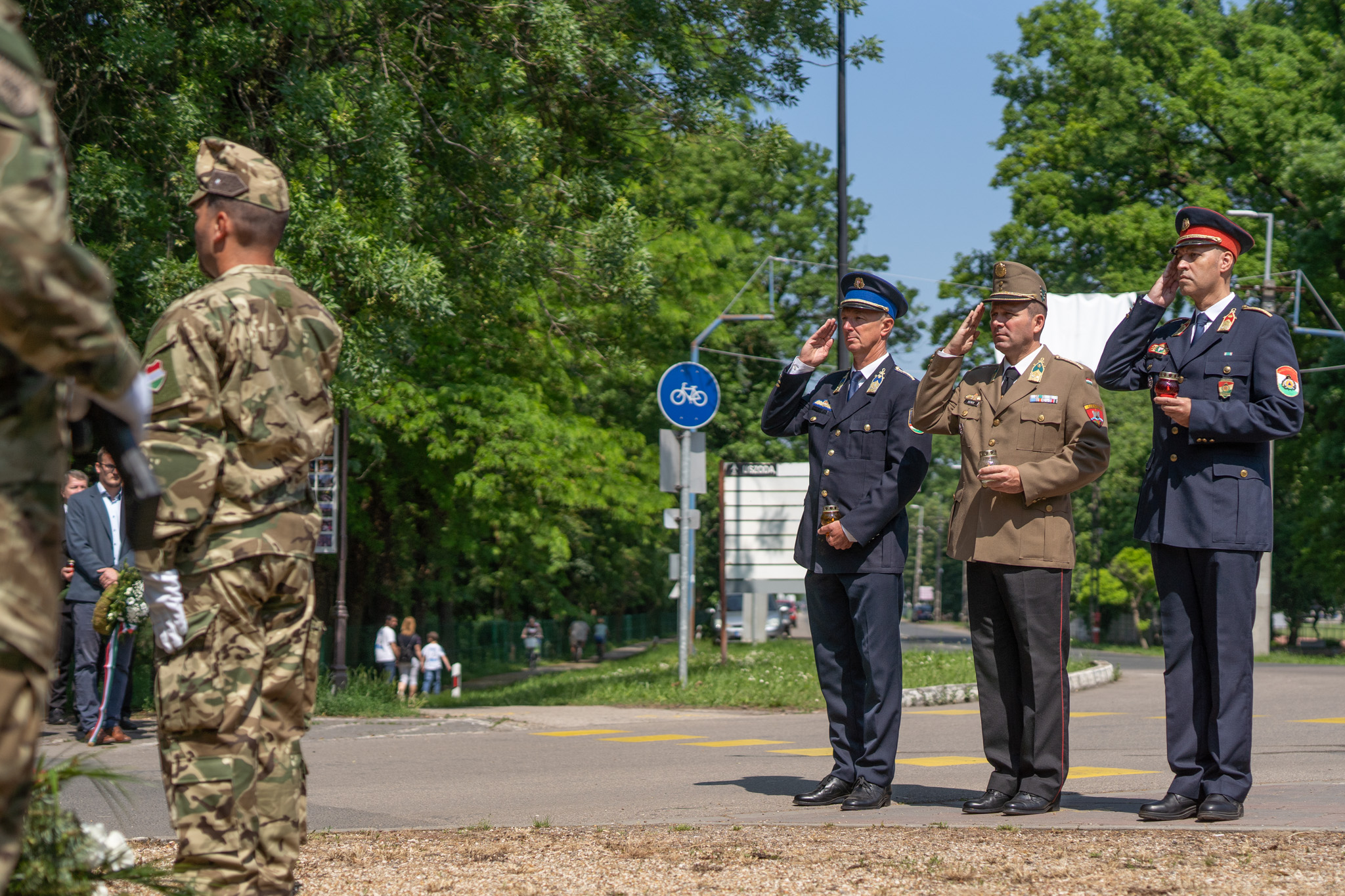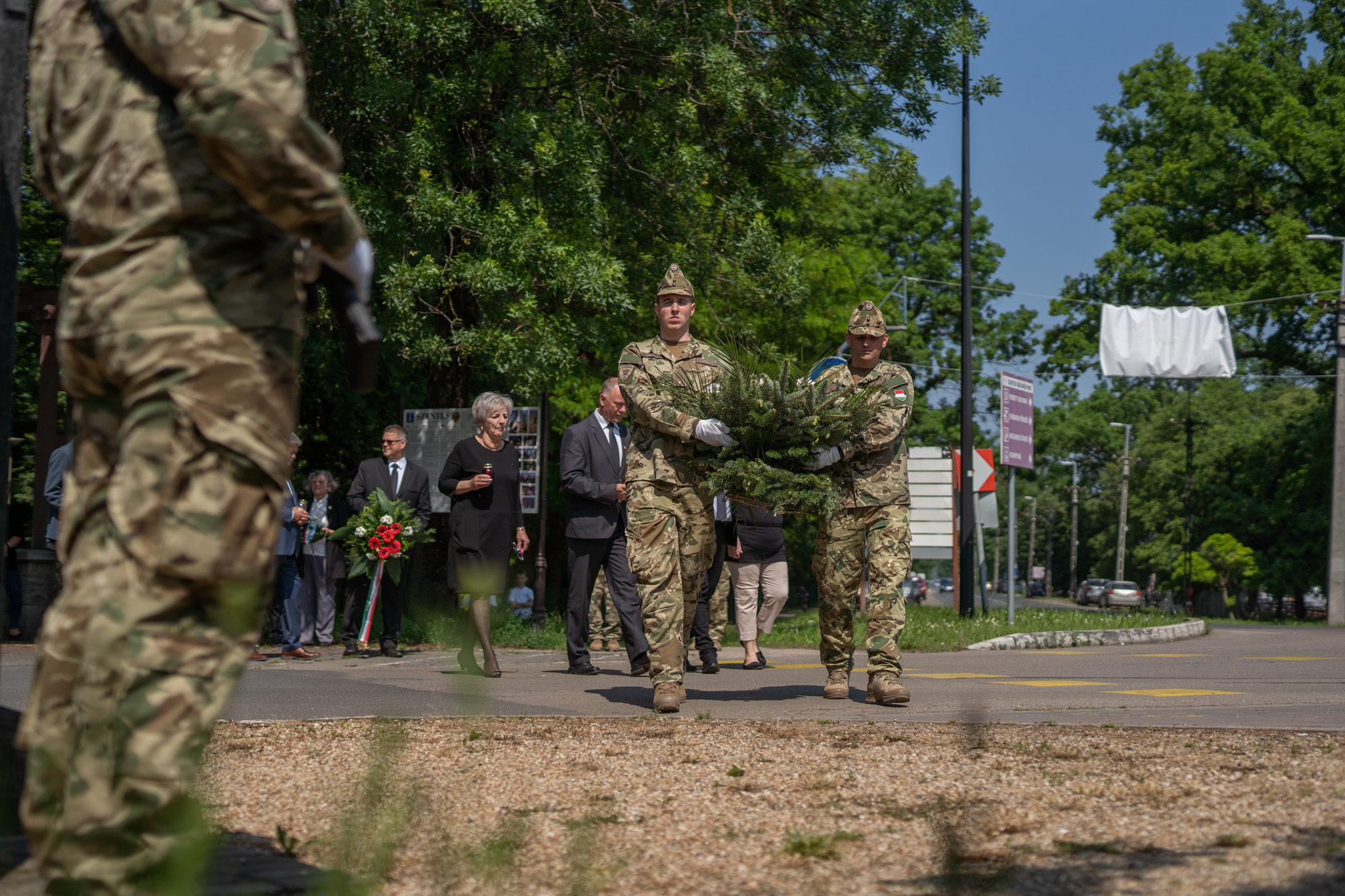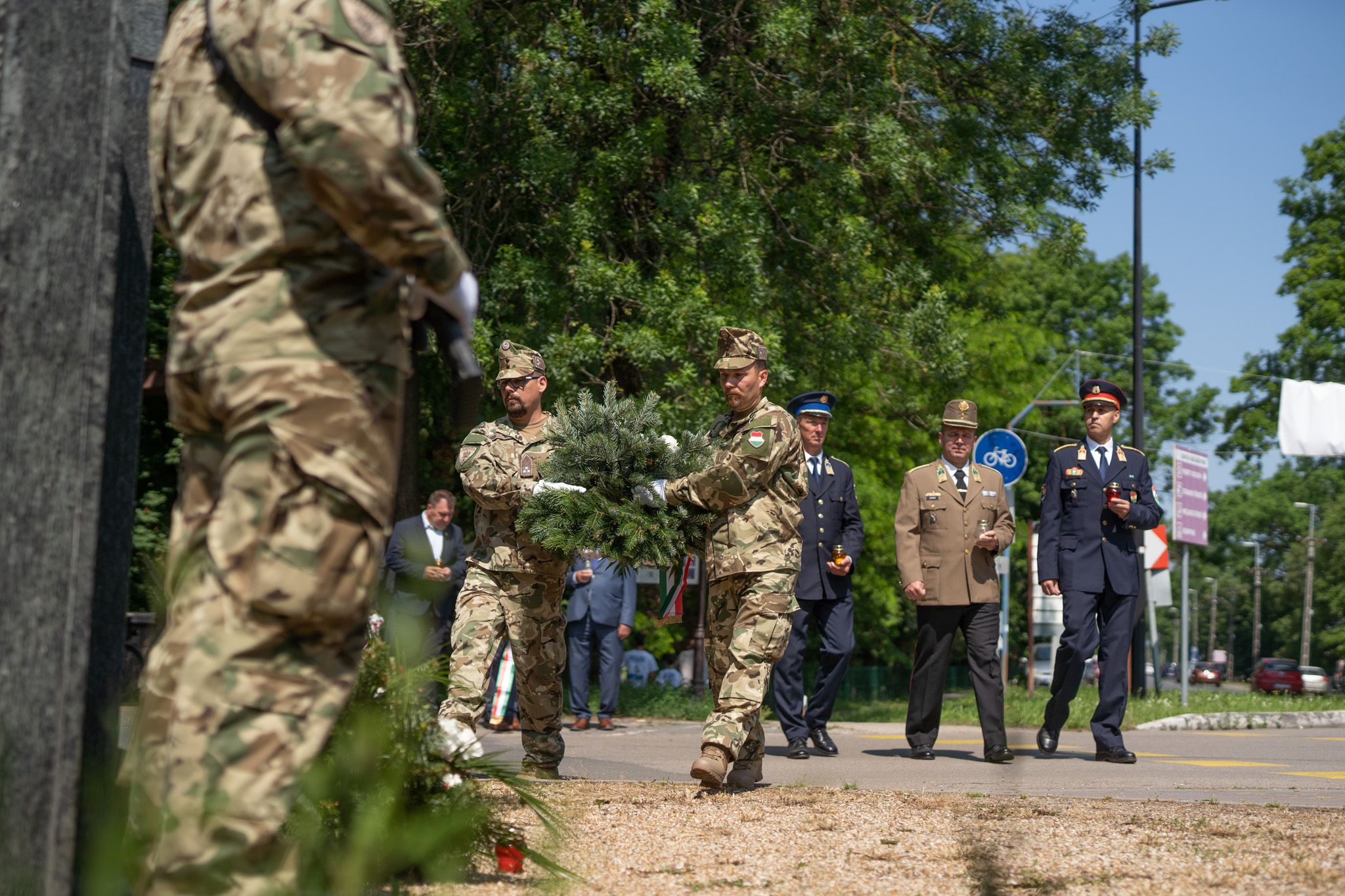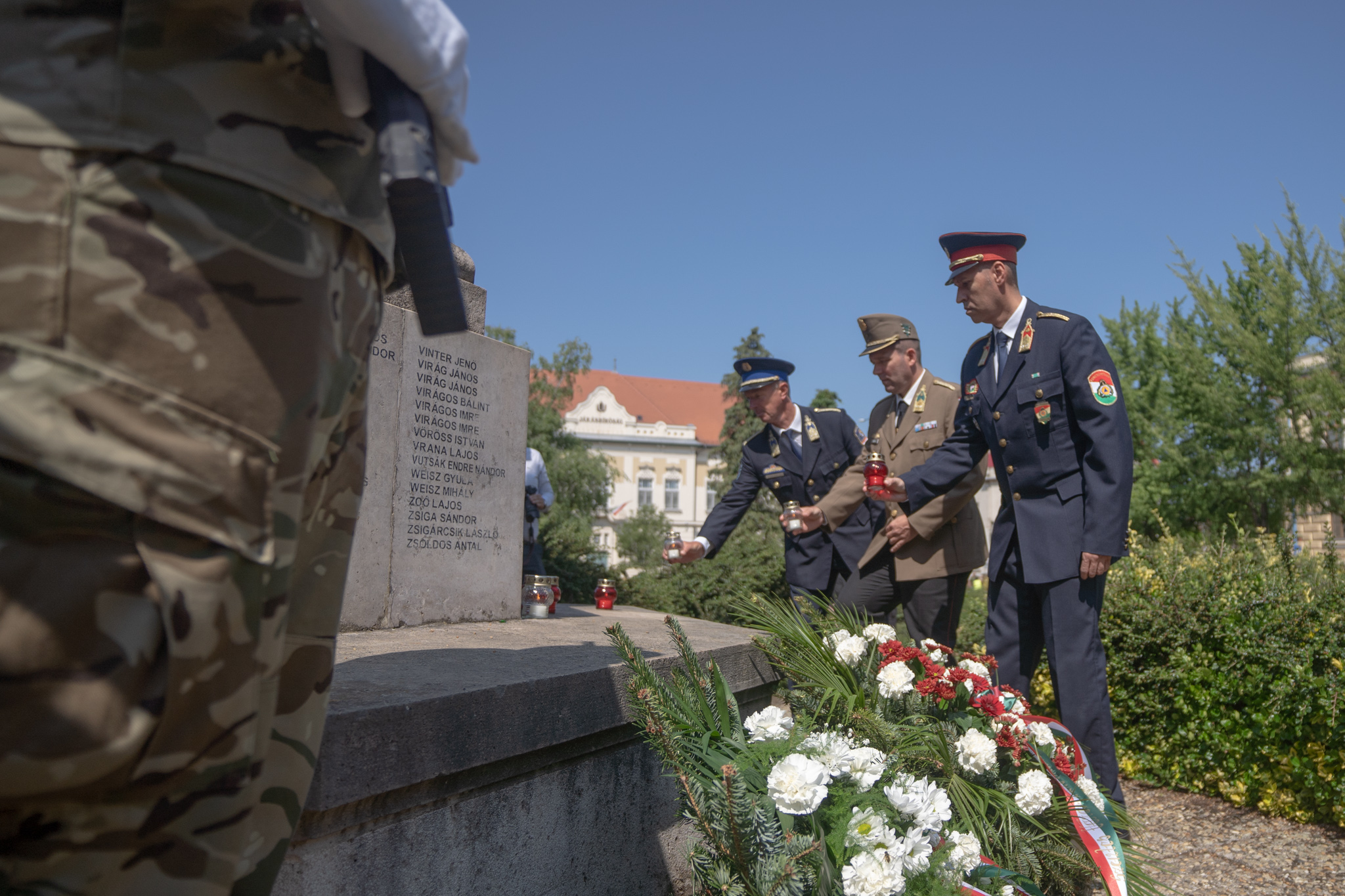 A rendezvényen a MH II Rákóczi Ferenc 14. Műszaki Ezred egy díszalegységgel vett részt. Az emlékműveknél Seres József alezredes, alakulatunk ezredparancsnok-helyettese helyezte el az emlékezés és tisztelet virágait. 📸Janó Miklós tőrm.