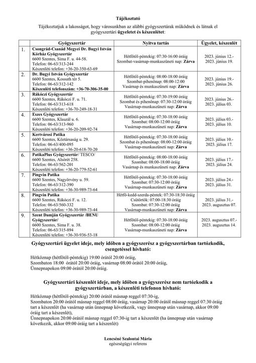 Kezdőlap Szentesi Élet Gyógyszertári ügyelet és készenlét 2023. június 12-től augusztus 14-ig…