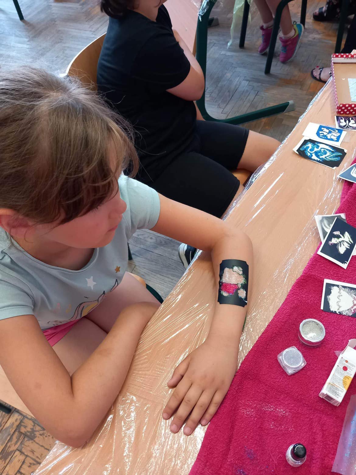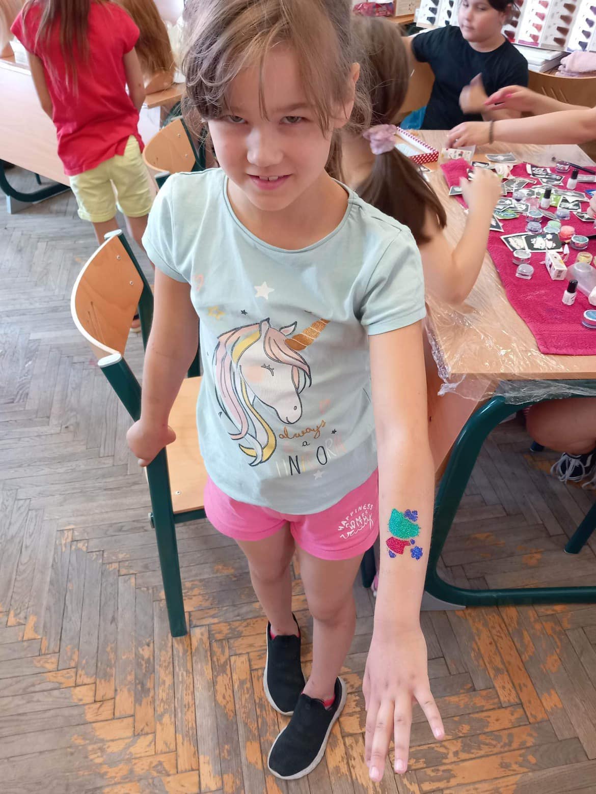 A mai délelőtt a szépítkezés kapott főszerepet. A gyerekek csodálatos fonott fizurákkal, színezett hajkoronákkal, körmökkel, csillámtetoválásokkal jöttek ki a fodrász, kozmetikus, kéz- és lábápoló technikus szakmák bemutatóiról. A nagy sikerrel való tekintettel a „Zsoldos-bolt” ma délelőtt újra kinyitott, így a kereskedő kabinetben táborlakóink újra kasszához ülhettek, áraztak, csomagoltak, mértek, vásároltak és kézműveskedtek.