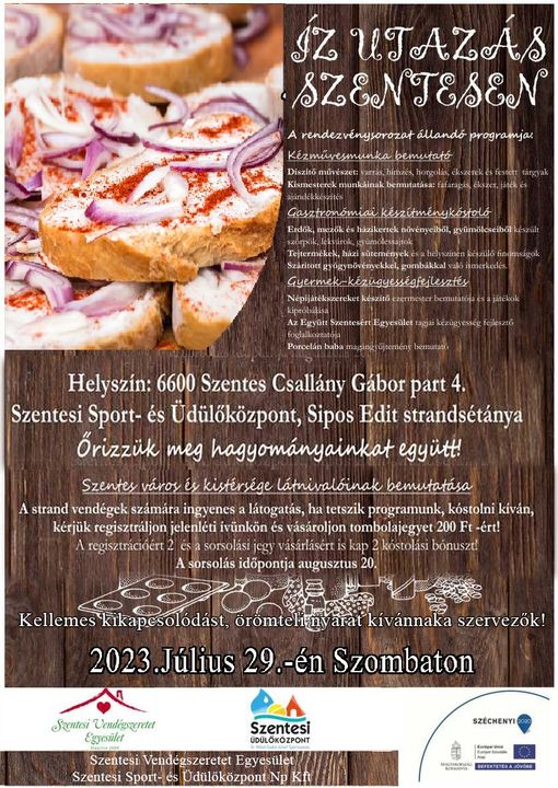 A Szentesi Vendégszeretet Egyesület tisztelettel meghívja Önt és családját a 2023.július 29.-én szombaton, 14-18 órakor, a Szentesi Széchenyi ligetben található Üdülőközpont strandján, a