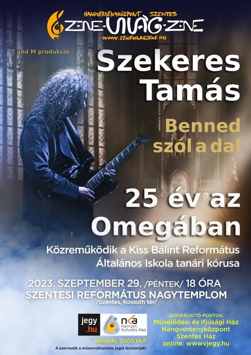 Nagy örömmel jelentjük be, hogy szeptember 29-én, pénteken egy igazán különleges és nagyszabású előadáson fogadjuk a Református Nagytemplomban Szekeres Tamás gitárművészt, aki a ‘Benned szól a dal – 25 év az Omegában’ című műsorával érkezik Szentesre. Az este folyamán közreműködik a Kiss Bálint Református Általános Iskola tanári kórusa. 🔖jegyek elérhetők a https://www.jegy.hu/program/szekeres-tamas-benned-szol-a-dal-150857/1023638 internetes oldalon. #HangversenyközpontSzentes #ZeneVilágZene #Szentes #Koncert #SzekeresTamás #25ÉvazOmegában #BennedSzólADal