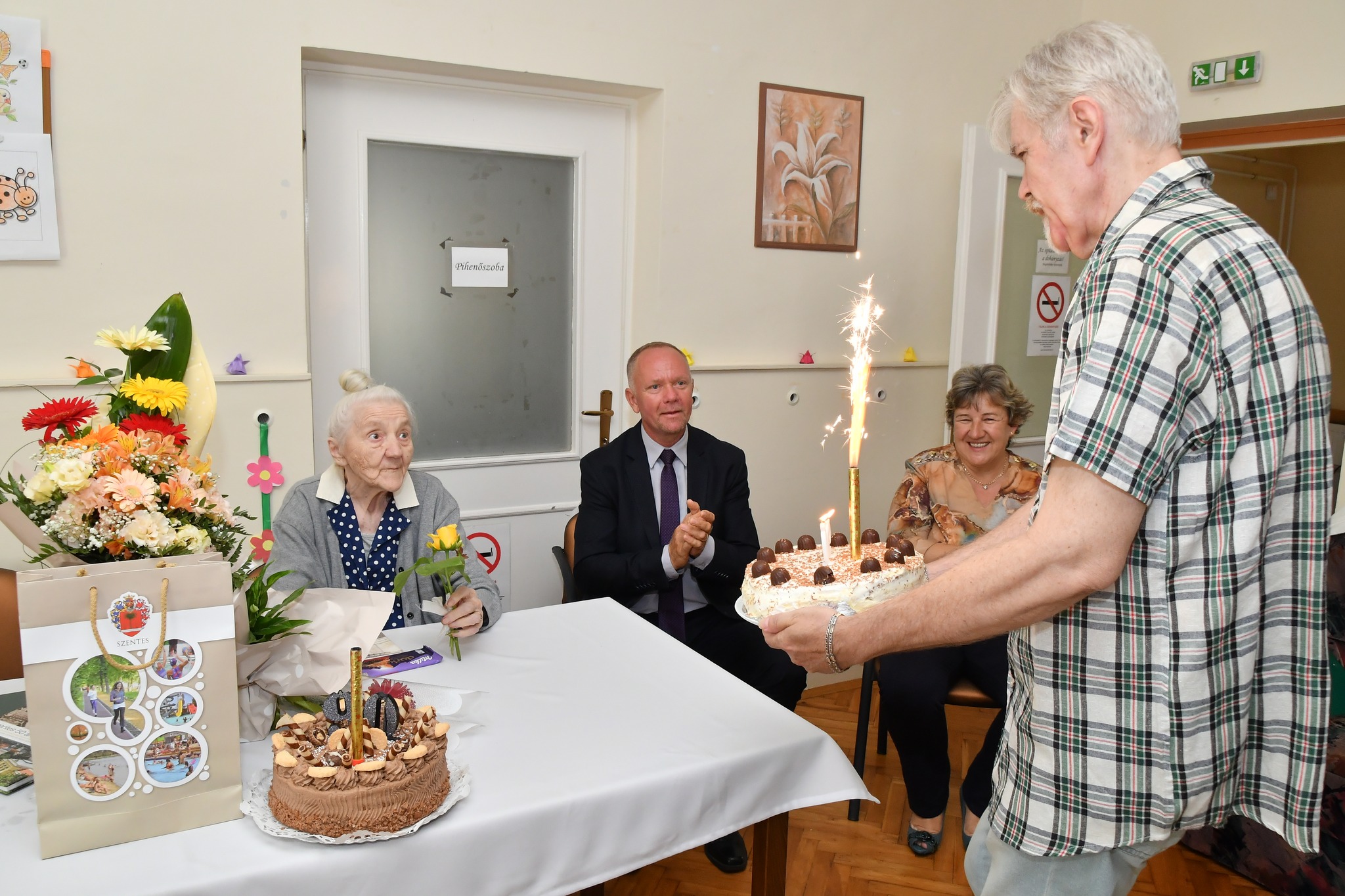 90. születésnapja alkalmából köszöntötték Jámbori Antalnét július 31-én a Szentesi Gondozási Központ III. sz. klubjában. Bár Ilonka néni emlékei megkoptak, ma