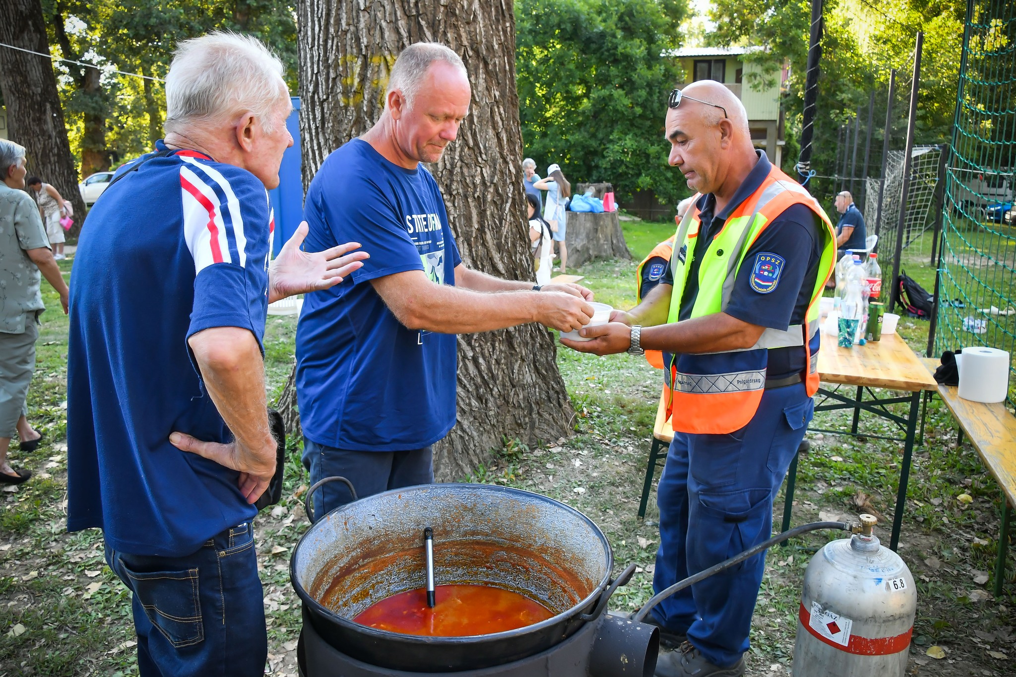 Az időjárás is a kegyeibe fogadta a rendezvényt, így akik bírták a hűs Tiszát, azok bemerészkedtek a 23-24 fokos vízbe, utána pedig jólesett a meleg halászlé.