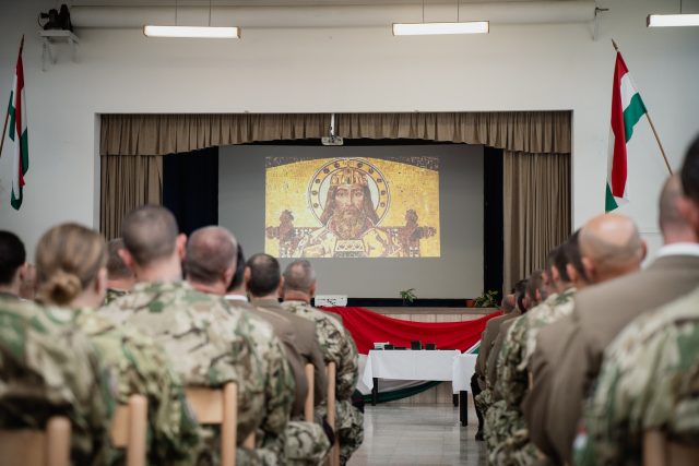A csapatzászló és az elöljáró fogadását követően az államalapítás jelentőségét ünnepi beszédében Illésfalvi Péter Úr, a Honvédelmi Minisztérium Hadtörténeti Intézet és Múzeum Hadtörténelmi Kutató Osztály kutatója méltatta. Beszédében hangsúlyozta, hogy: „…Szent István öröksége egyszerre tárgyiasult és szellemi. Tárgyiasult mert van egy ezer éve ránk bízott ország, annak minden természetes kincsével és mindazzal, ami eleink munkája nyomán született és születik most is. Fontos a jelen idő használata, mert így rajzolódik ki az ív a rég múlttól a máig és így tekinthetjük ma is magunkénak ezt a hagyatékot, mely élő, szerves és általunk is folytatódik.” A beszédet követően Fehér Csaba tábori lelkész, a Szentesi Nagytemplomi Református Egyházközség, Lelkészi Hivatal, református lelkipásztora ünnepélyesen megáldotta a nemzeti színű szalaggal átkötött, új búzából sütött kenyeret, amely az élet jelképe.