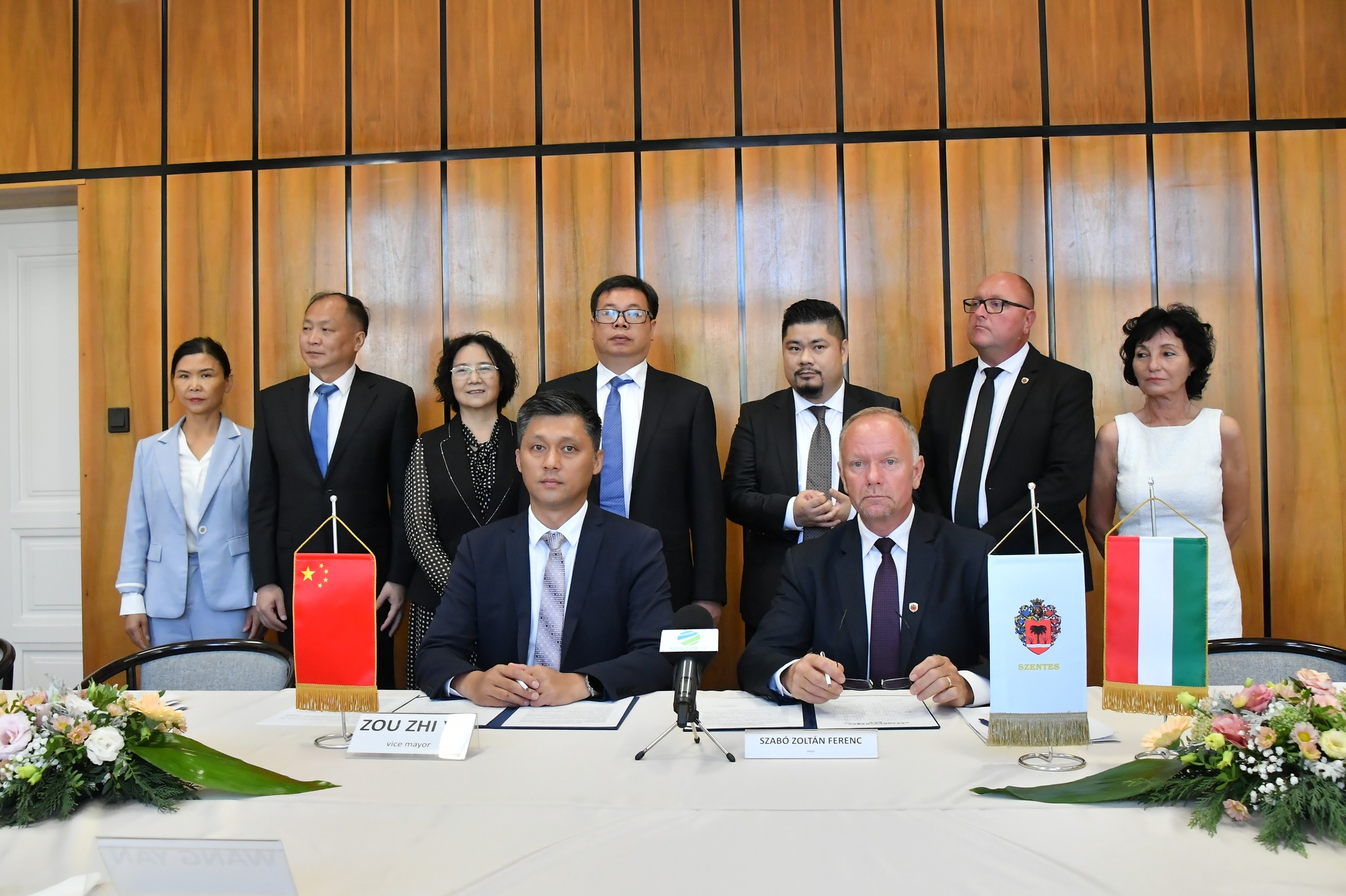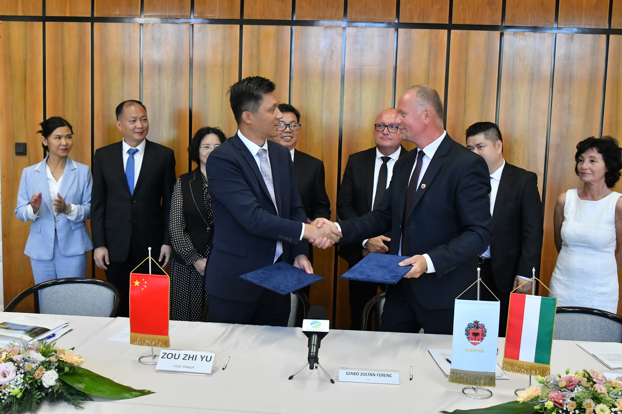 Kína és Magyarország közötti diplomáciai kapcsolatok 74. évfordulóján, aláírták a baráti városok szándéknyilatkozatát Szentesen.