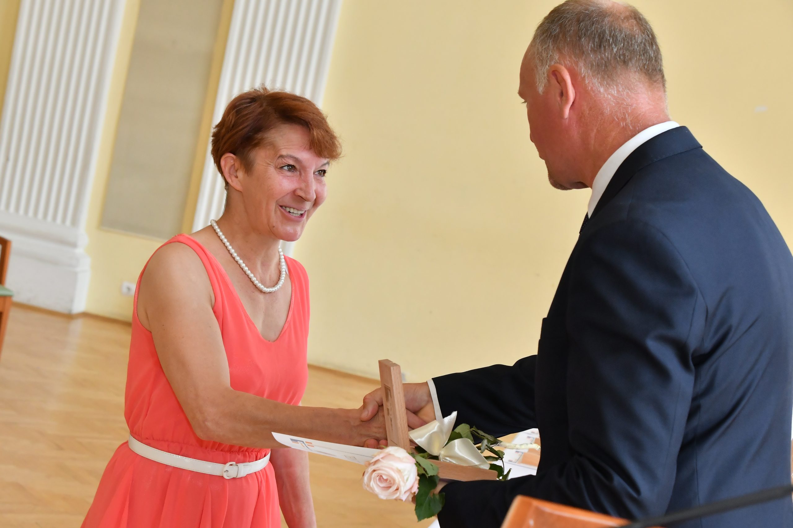 - Gila Éva 12 éve dolgozik a Gondozási Központnál. Terápiás segítői munkaköréből adódó feladatait mindig pontosan és határidő szerint végzi, a hozzá kapcsolódó dokumentációja példaértékű. Az ellátottak körében is kivívta magának a tiszteletet, elismerést, ezért bátran és rendszeresen keresik meg problémáikkal és személyes örömeikkel is. Viselkedése mindig kedves, higgadt, türelmes, empatikus, mely a hozzá fordulók bizalmát erősíti. Munkatársaival való kapcsolata is a partnerségen és segítésen alapul, jó vele együtt dolgozni. Részt vesz a munkakörén túli eseményeken is. Elkötelezett és lojális az intézményhez, szorgalmasan részt vesz a képzéseken, igyekszik beépíteni mindennapi munkájába. A szakmai munkához való hozzáállása példaértékű.