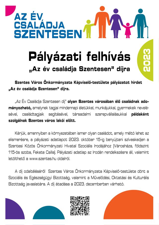 Szentes Város Önkormányzata Képviselő-testülete pályázatot hirdet „Az év családja Szentesen” díjra.