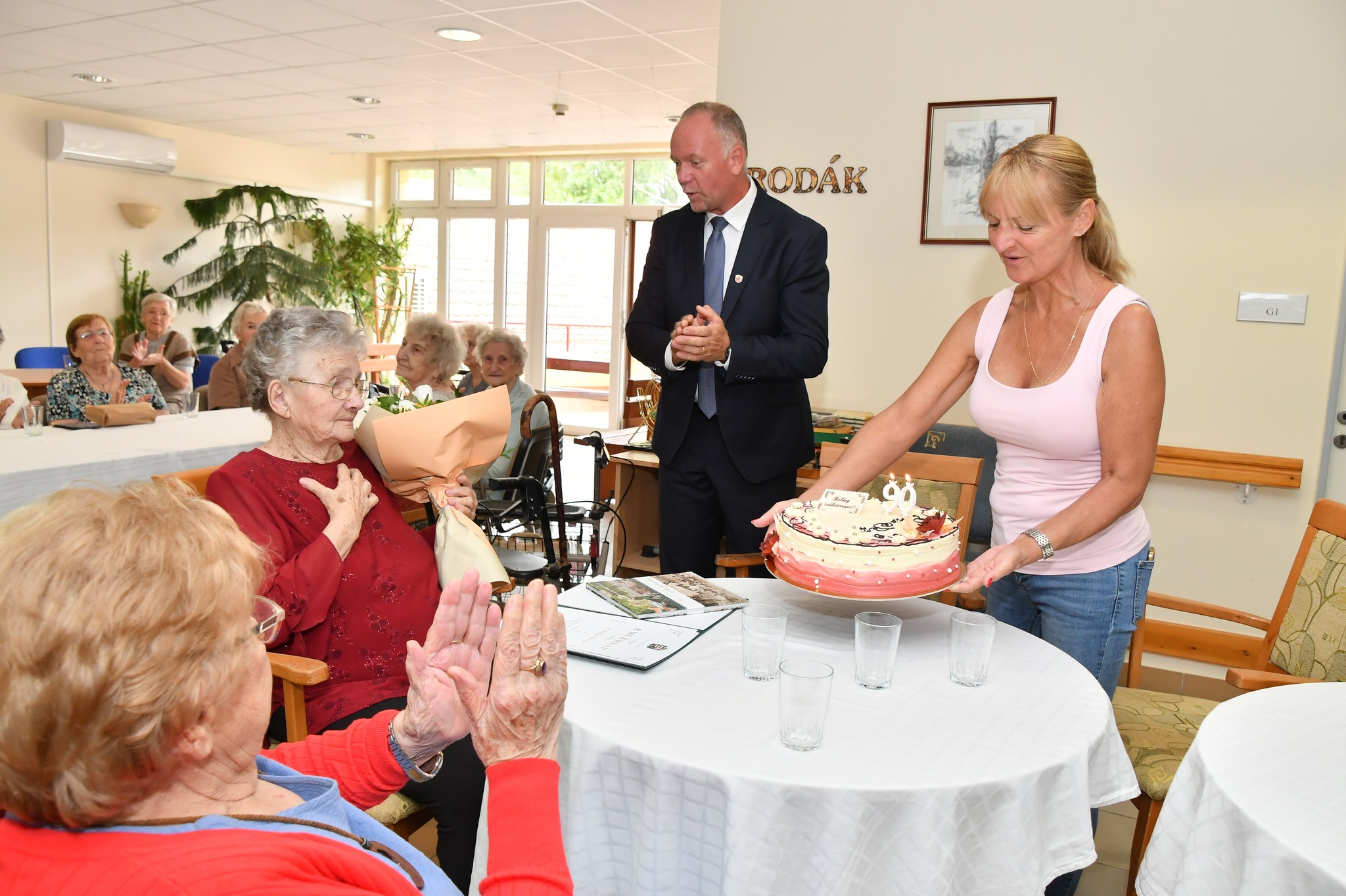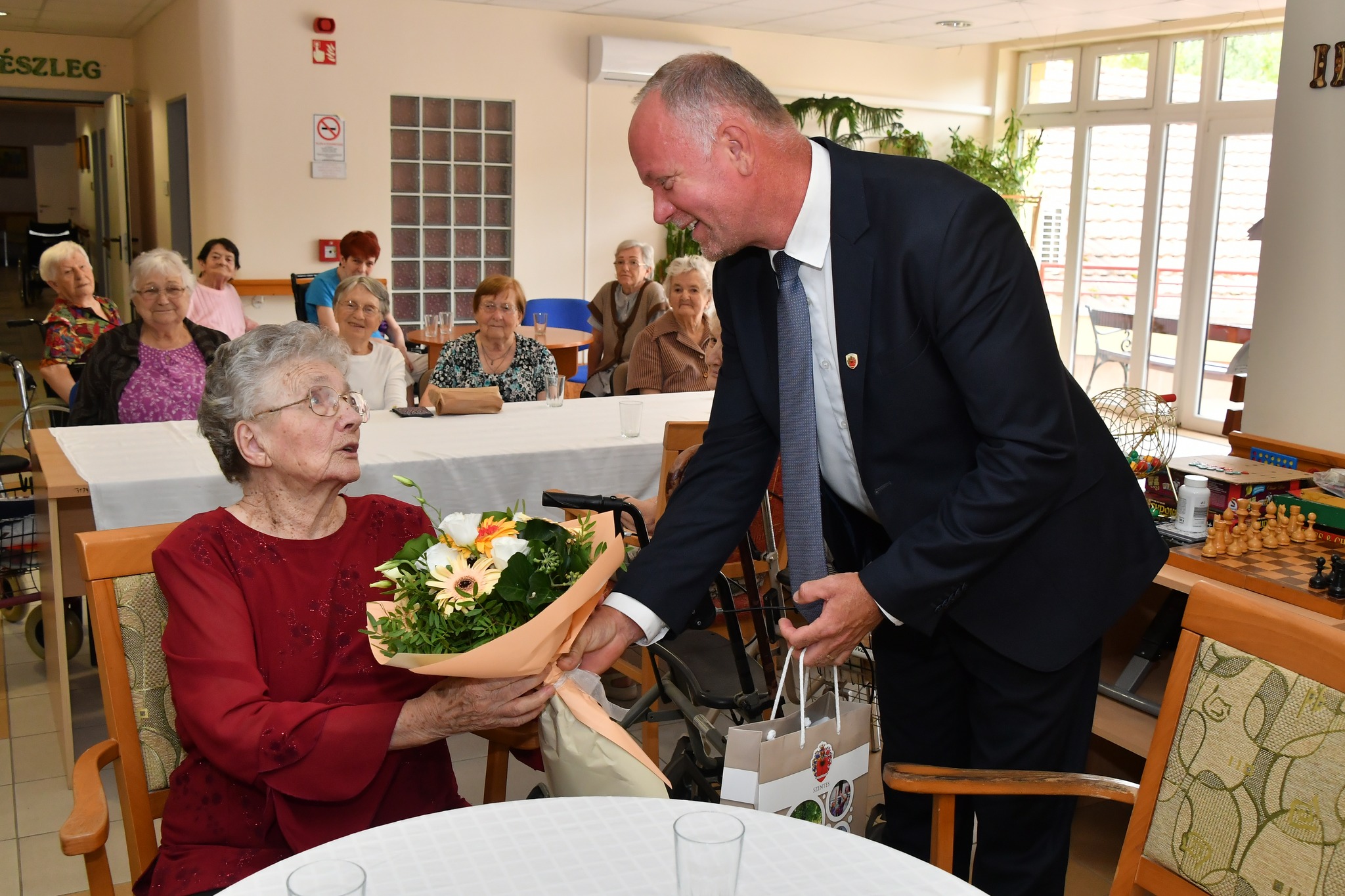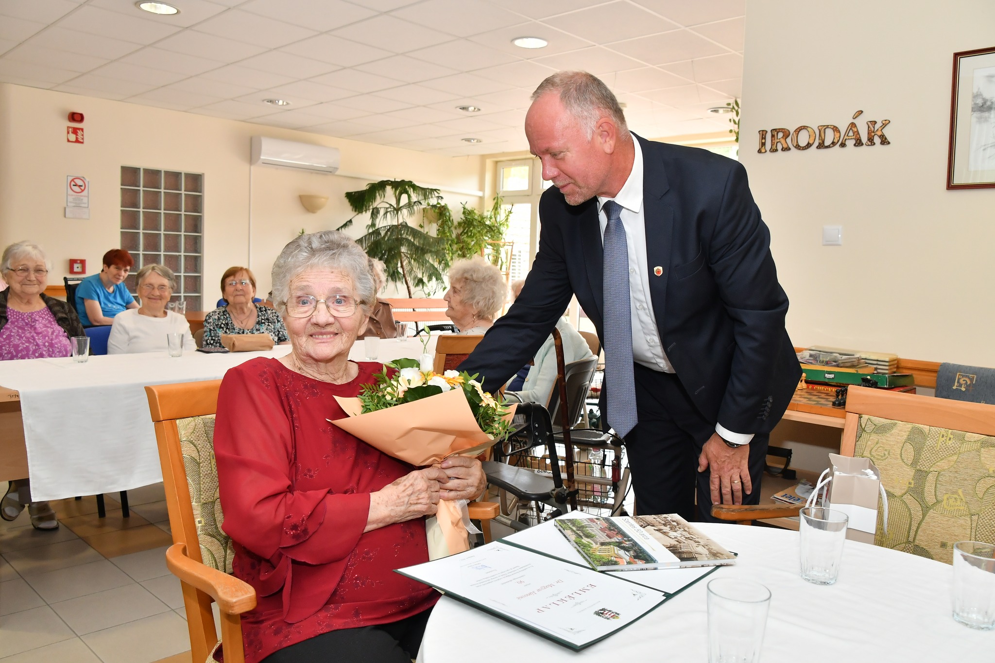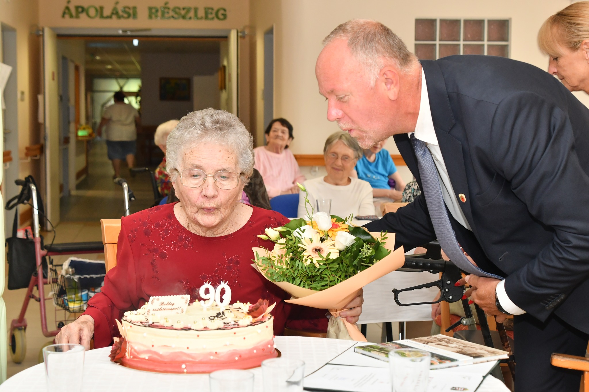 A város nevében Szabó Zoltán Ferenc polgármester köszöntötte 90. születésnapja alkalmából Dr. Magyar Jánosnét, sokak számára csak Inci nénit a Dr. Sipos Ferenc Parkerdőotthonban.