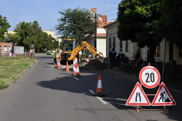 A mai napon kapott tájékoztatás szerint teljes útzár mellett végzik el azt az útjavítást és a hiba feltárását, amely a Somogyi B. utca elején