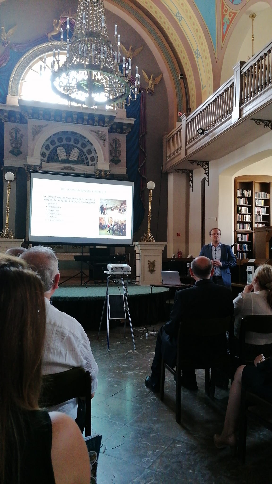 Vendégségben vagyunk, a bajai könyvtár 75. születésnapján a gyönyörű zsinagógakönyvtárban.
