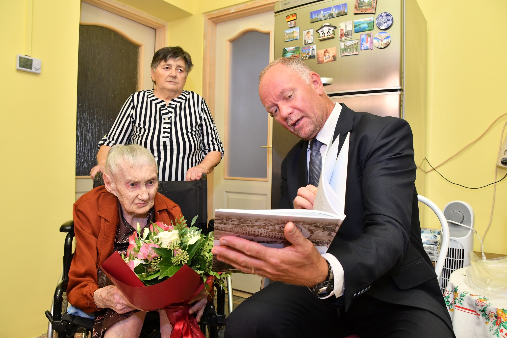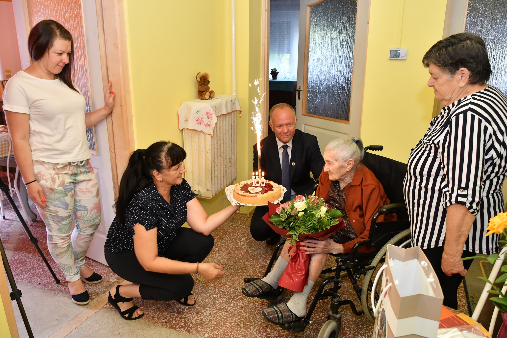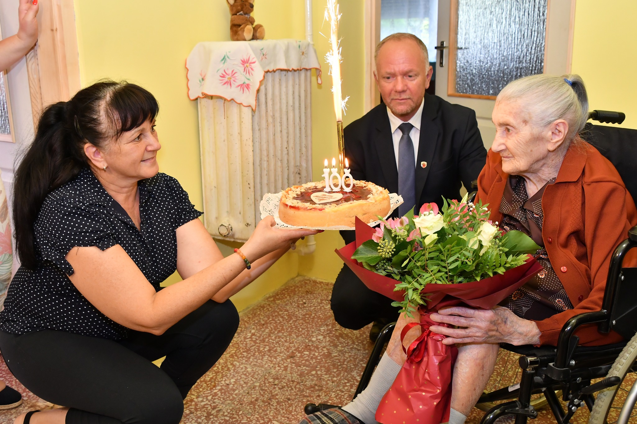 Virág Lászlóné 100 éves szépkorút köszöntötte Szabó Zoltán Ferenc polgármester szeptember 15-én Juhász Gyula utcai otthonában. Marika néni azt mondja, már mindent megélt, amit lehetett, az élteti, hogy a családja látogatja. A cikket lapunk 7. oldalán találják.